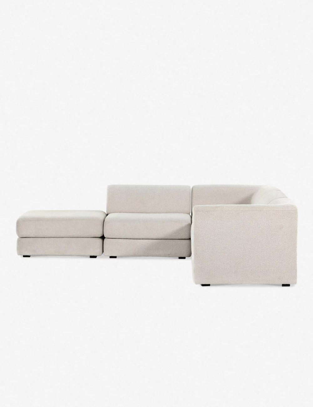 Style your lounge for versatile appeal with the sculpted lines of this 4-piece sectional with an ottoman. You can configure the modular sectional design to suit your space offering sprawling comfort or a dynamic anchor for a social lounge. Performance upholstery finishes this sectional sofa in an on-trend neutral color ready for everyday appeal.