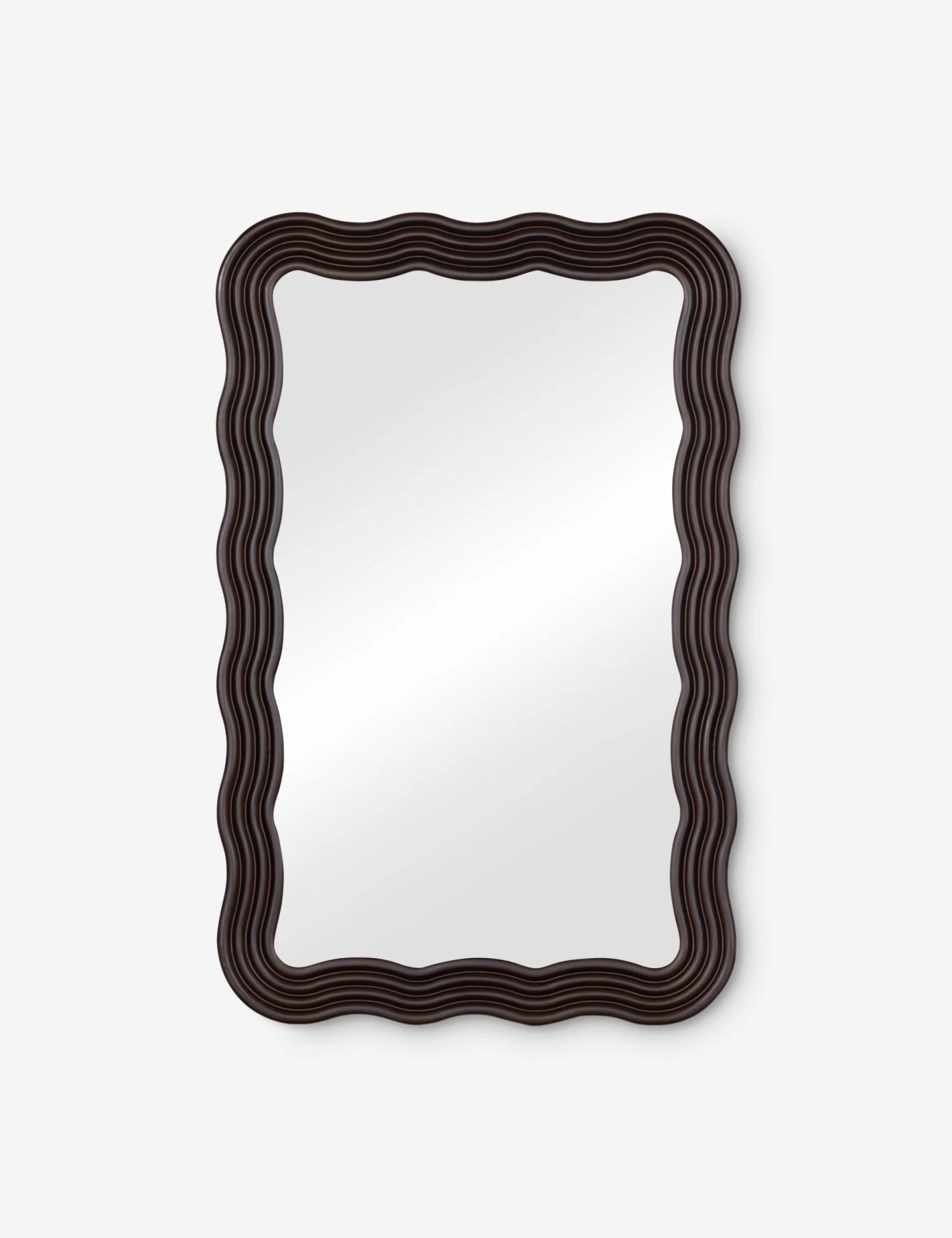With a curving frame and deep mahogany finish, the Haston medicine cabinet brings a sculptural touch to bathroom storage. Its reversible door opens to reveal hidden storage—blending everyday function with standout form.