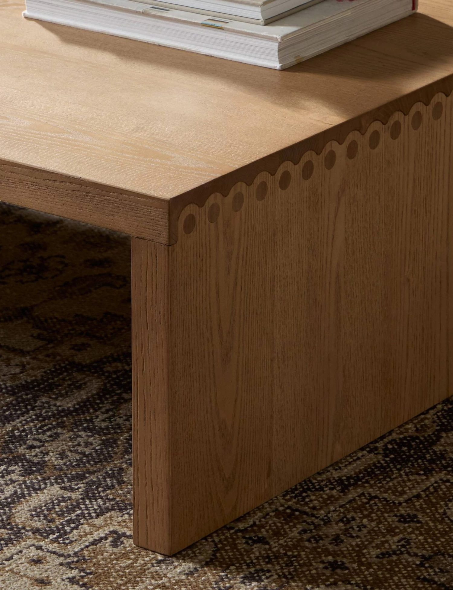 Four Hands brings their exceptional craftsmanship to a timeless collection rooted in Amber Lewis’ perennial California style. Scallop details add depth and flair to a waterfall silhouette in this modern coffee table. The low-slung design is casual and inviting, perfect for a refined living room seating area that benefits from a central coffee table to gather around.