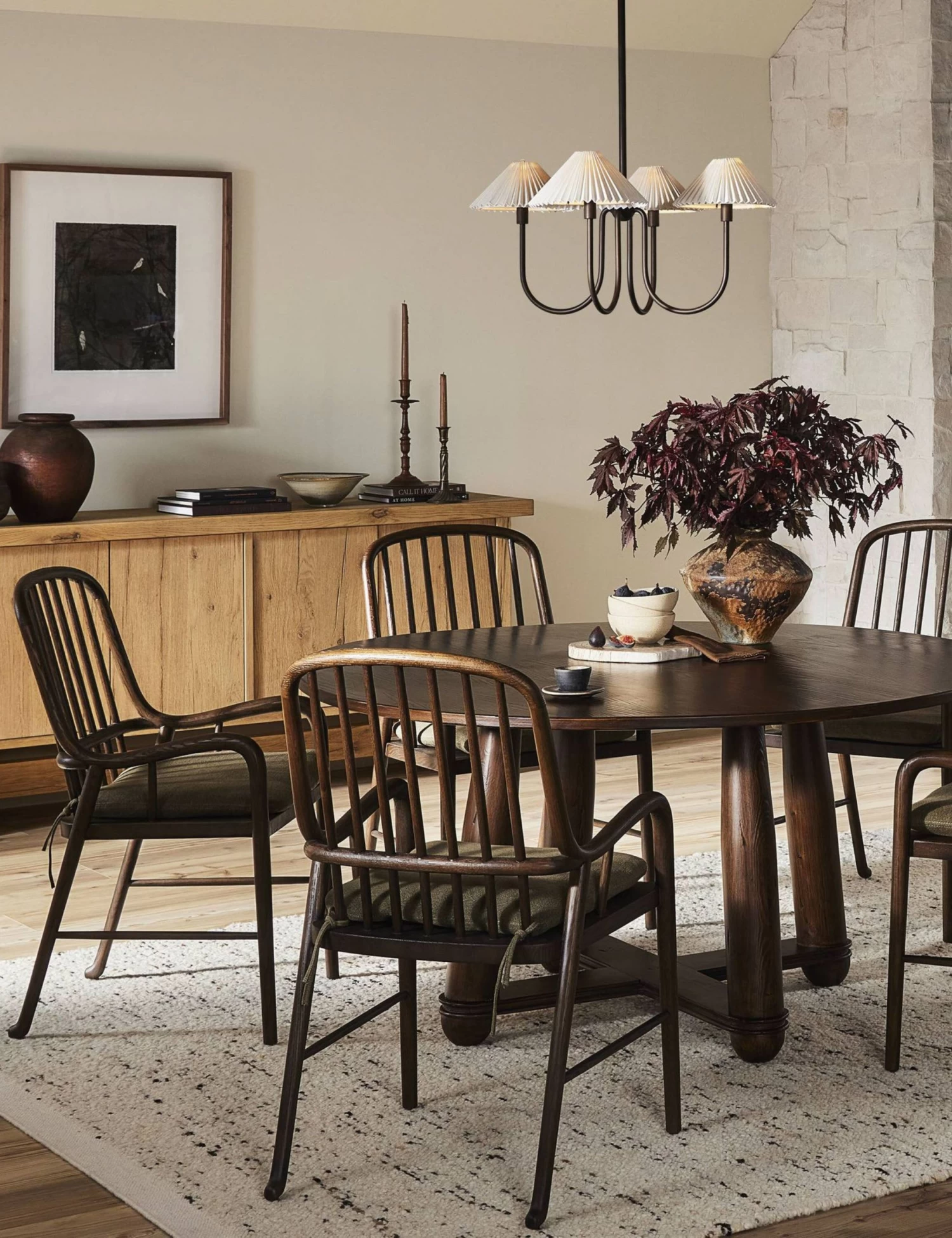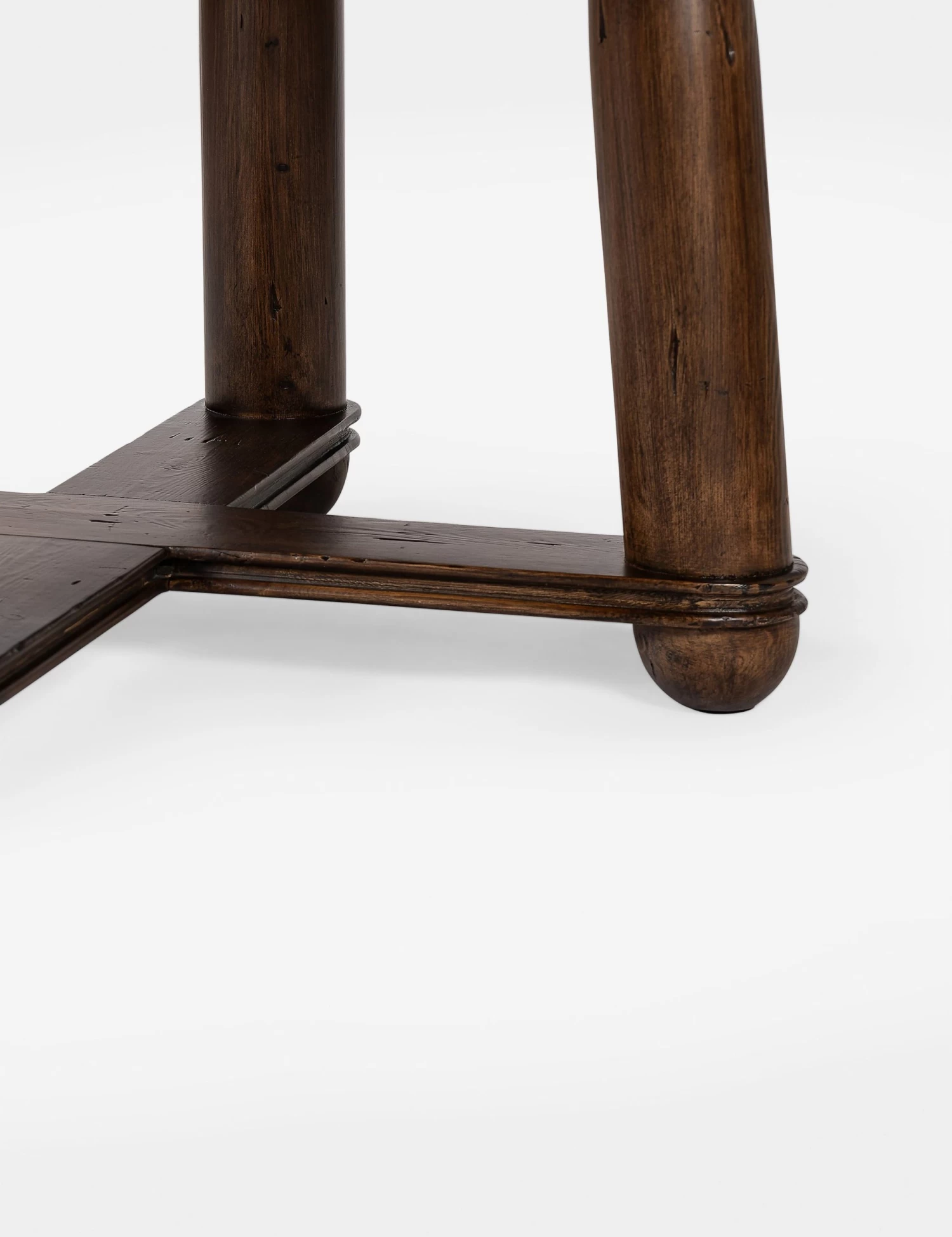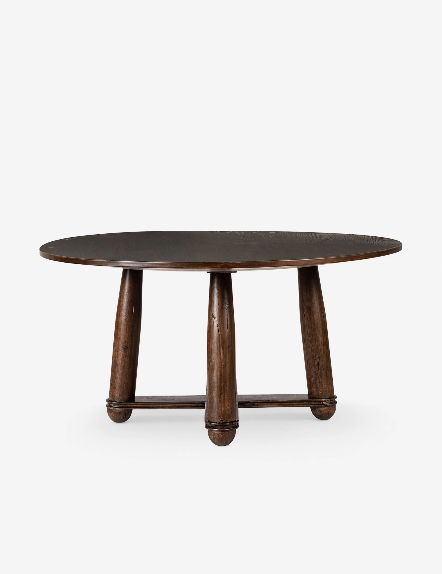 Four Hands brings their exceptional craftsmanship to a timeless collection rooted in Amber Lewis’ perennial California style. A simple frame and dark finish showcase classic craftsmanship in this wood dining table. The round table sits on thick spindle legs connected by low stretchers with vintage beading across.
