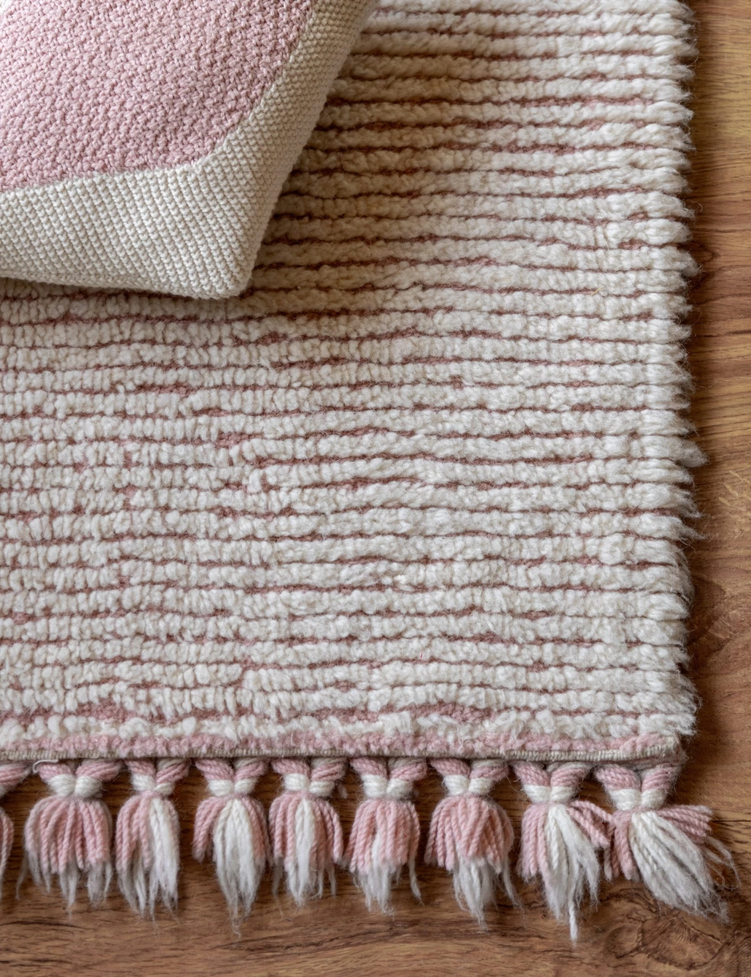 Lorena Canals brings the durability and softness of wool to a patented washable design for a luxurious, easy-care area rug. With a textural, hand-tufted pile and braided tassels, this blush rug is a functionally chic addition to a playroom or multipurpose lounge. Enjoy the plush natural touch underfoot and launder again and again for always fresh style.