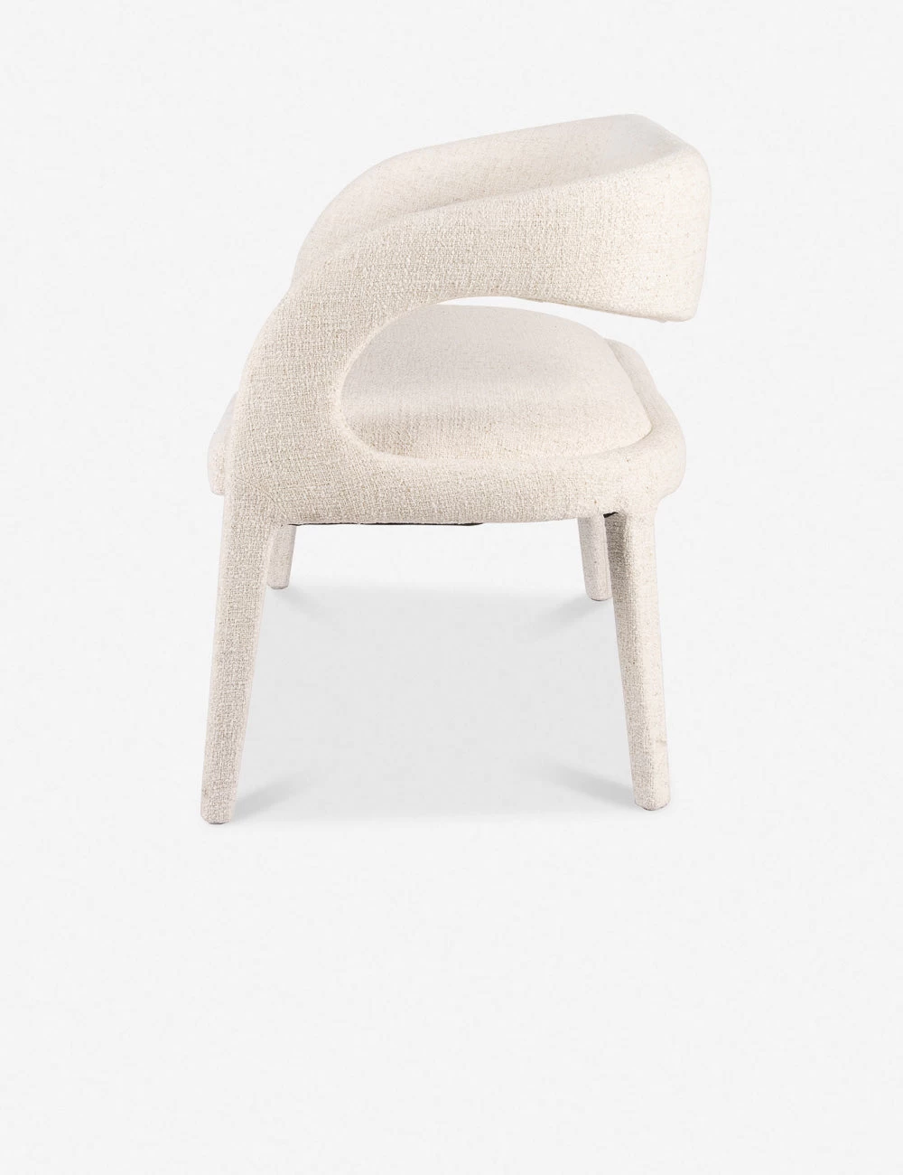 Sculpted lines and allover performance upholstery add a stylish edge to this dining bench. The shapely silhouette will elevate the tone of your dining room or entryway with both modern appeal and a practical touch.
