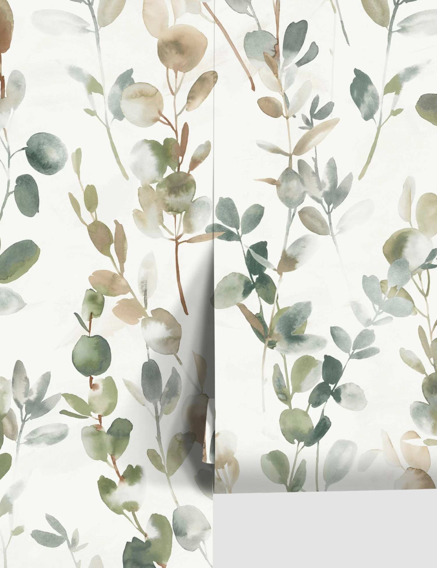 Add a touch of refinement to your look with this botanical wallpaper. Trailing eucalyptus sprigs offer lush greens and silvery undertones for fresh sophistication. Style this wallpaper in your entryway or a sunlit study to reflect the beauty of the natural world.