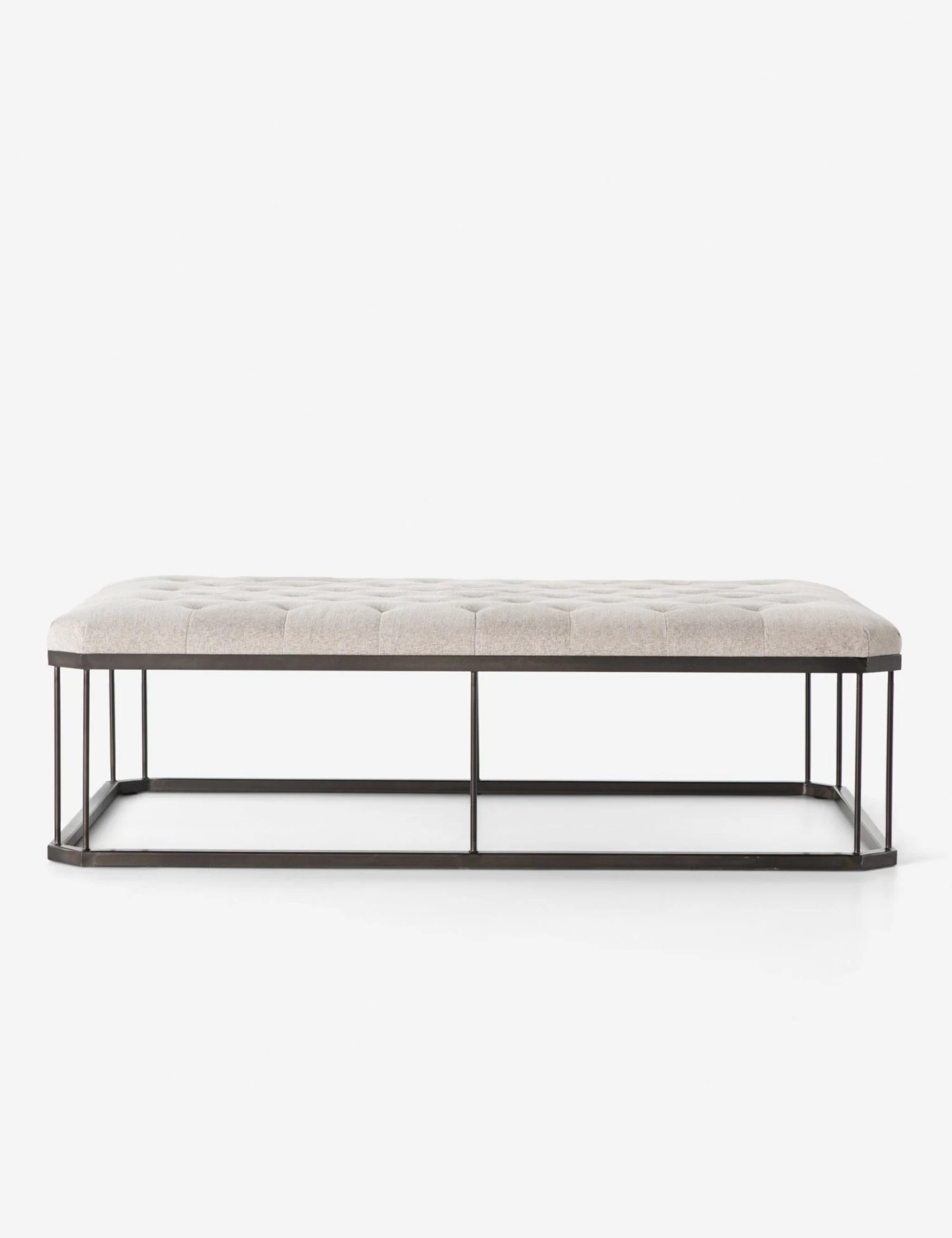Perfectly balancing timeless luxury and industrial aesthetics, this tufted ottoman is the ultimate statement in cool, modern living rooms.