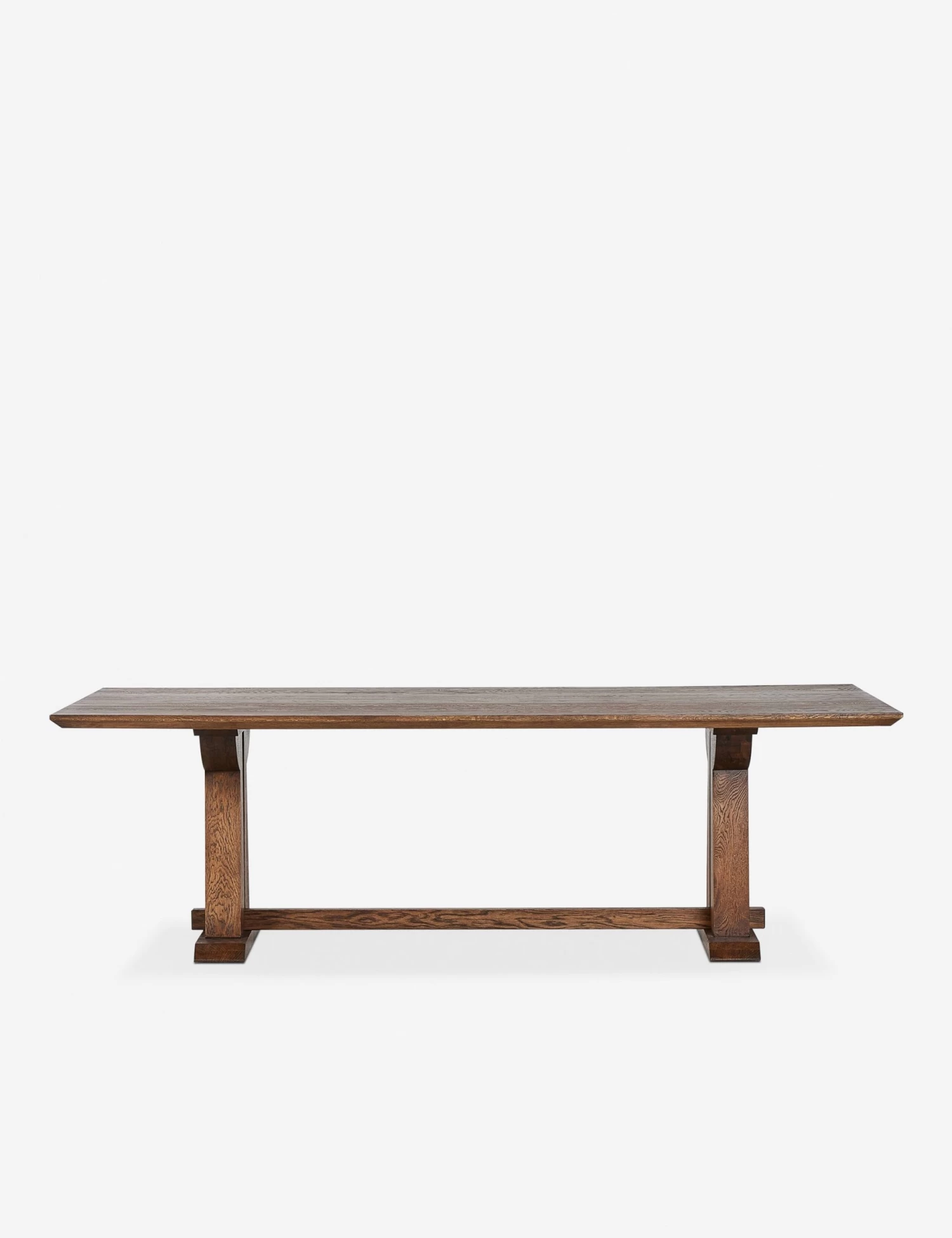 With seating for ten, this wood dining table is set for every occasion. It features a trestle silhouette for timeless appeal and is crafted from solid oak to create a dinner table you’ll be happy to gather around for years to come.
