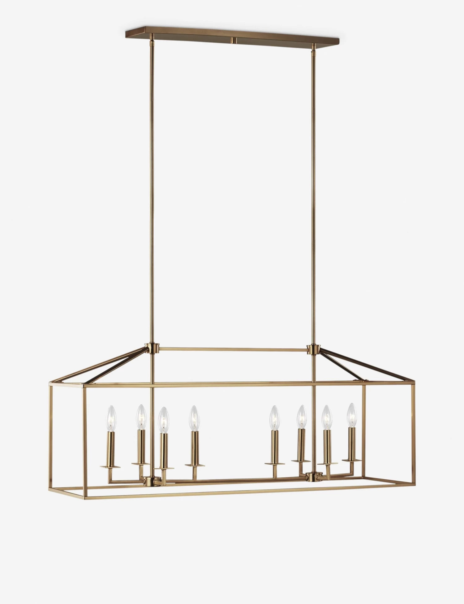Inspired by traditional lantern-style Chandeliers, Lucius offers a modern take on the classic lantern-style chandelier with its open frame and sleek geometric lines. This linear chandelier design can provide bright ambiance and task light over your kitchen island or dining room table.