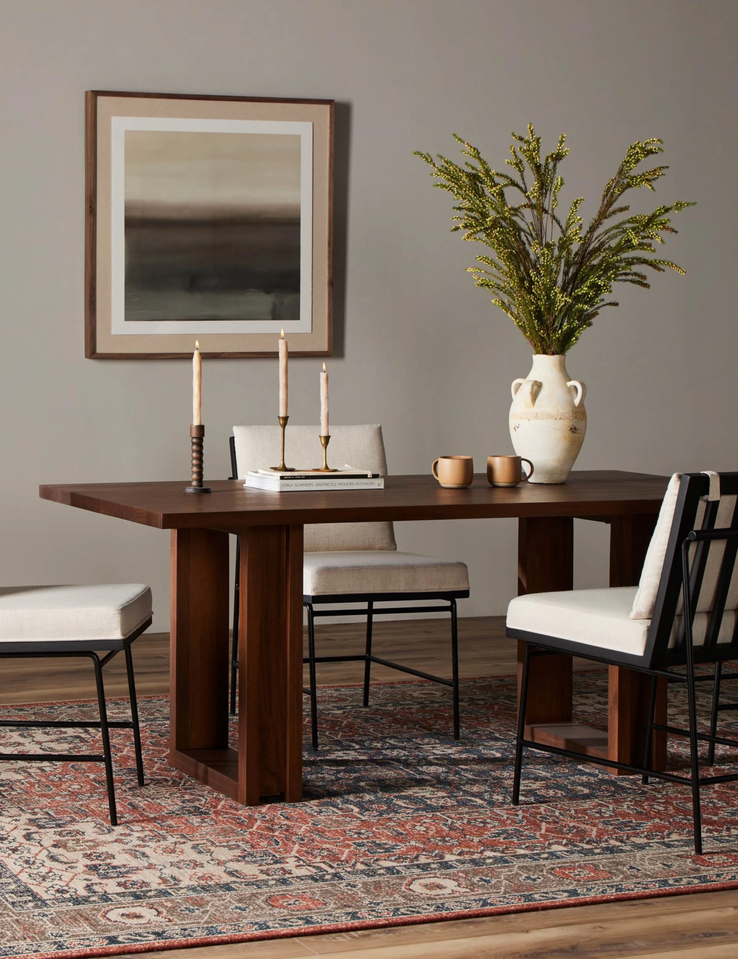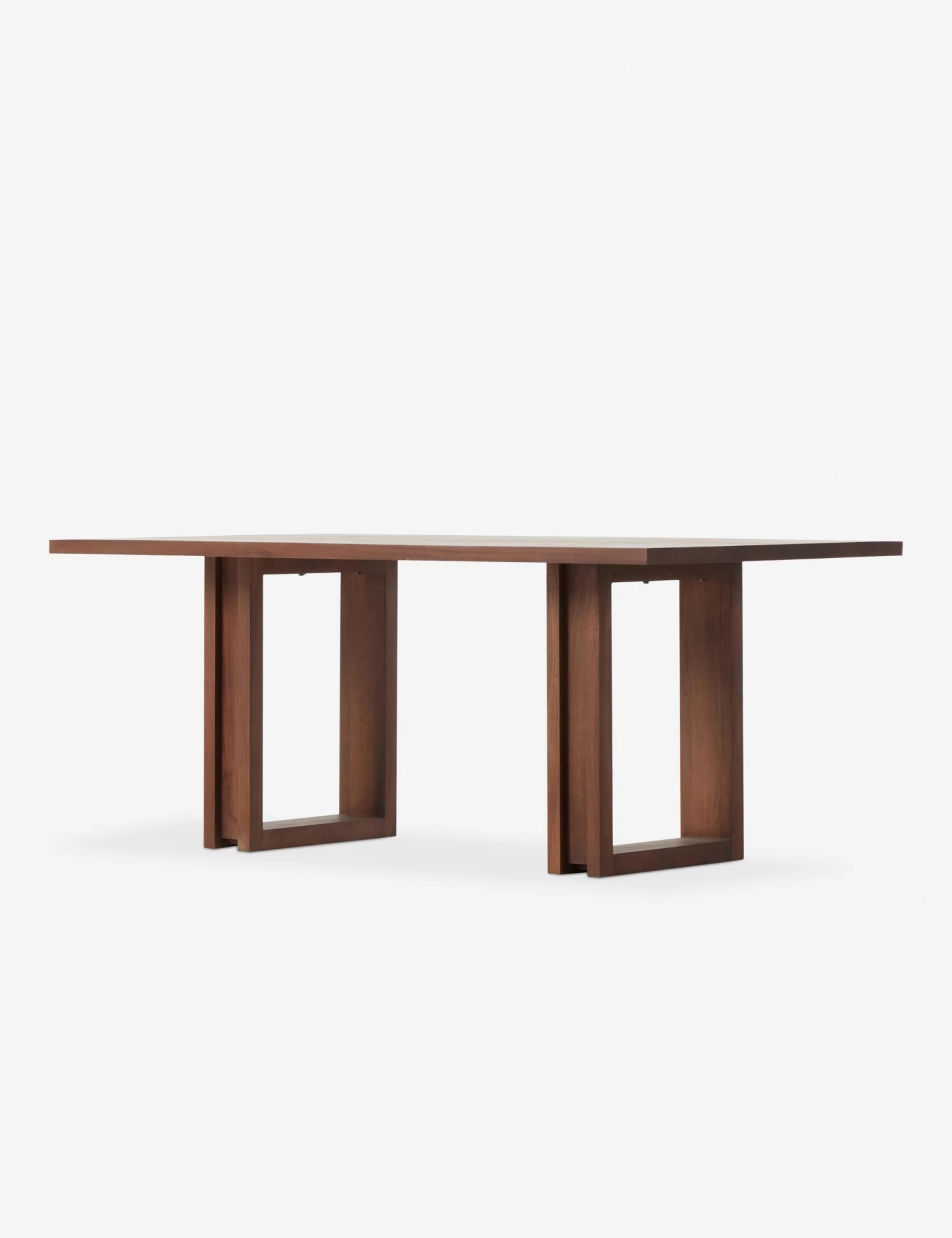 Curating a warm environment starts with your dining table. Mannion features a clean, linear profile that strikes a modern edge with two square legs setting off the design. A rich finish highlights the natural grain of the wood and brings an inviting tone to this eight-person table.
