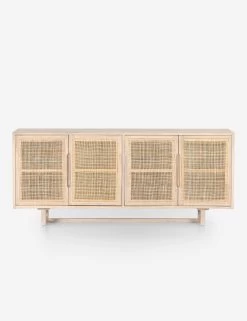 A timeless, clean-lined silhouette is elevated by detail-rich wood grain and woven cane door fronts to create this Margot Sideboard. Crafted from natural mango wood, its finish complements the two cane doors for a tonal storage piece. This buffet cabinet’s roomy interior includes two adjustable shelves.