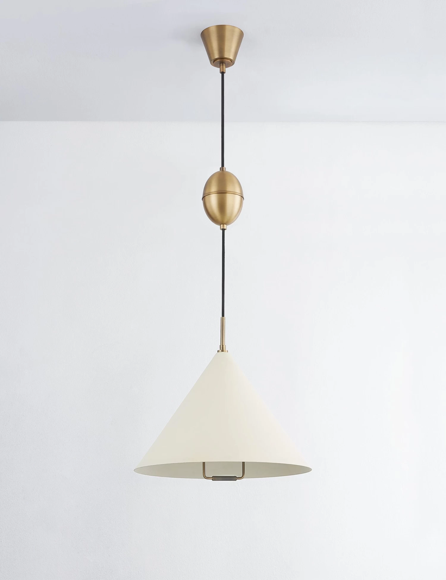 With an adjustable design inspired by antique bakery lamps, Maria is the perfect pendant light for over a kitchen table or a dynamic lounge. The pull handle at the bottom lets you extend or retract the cord from the egg-shaped accent piece so that this pendant can change from ambient illumination to useful task light with a simple touch.