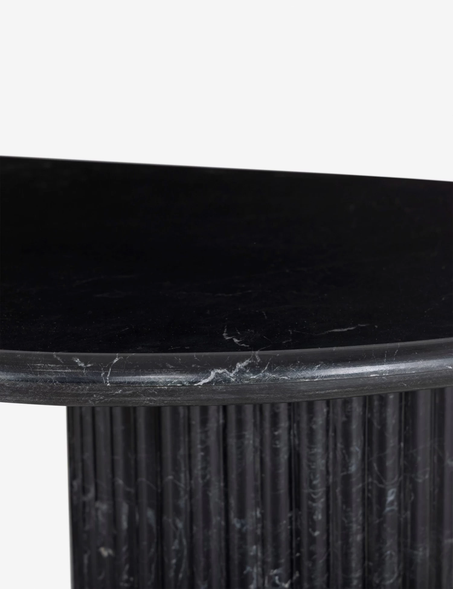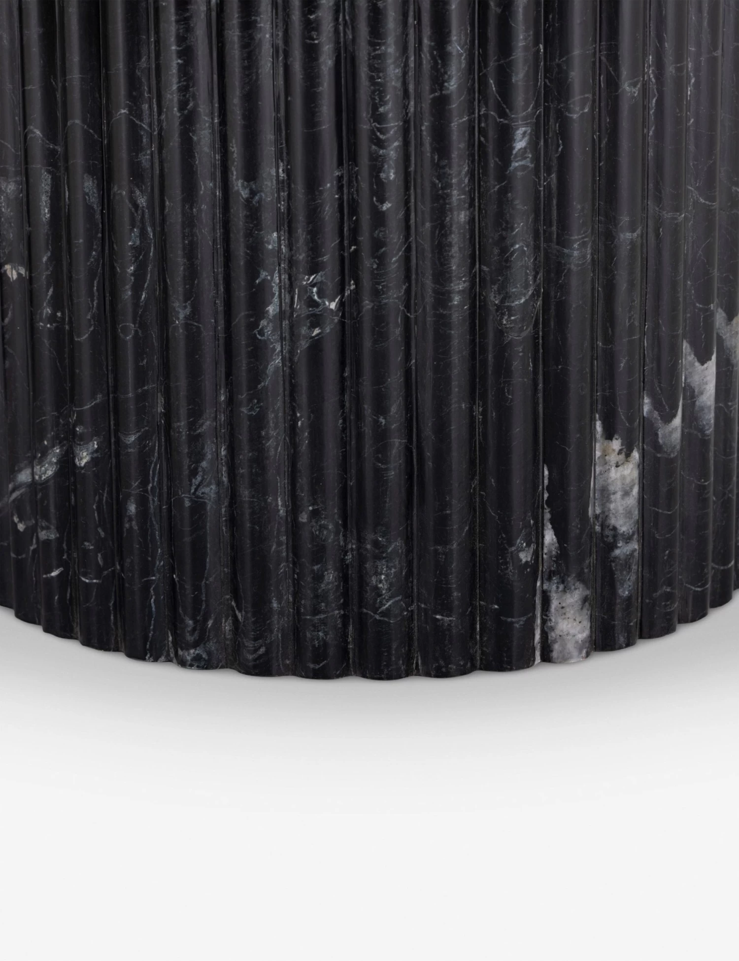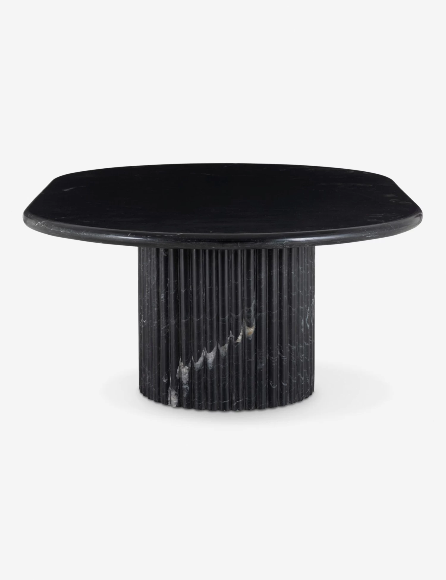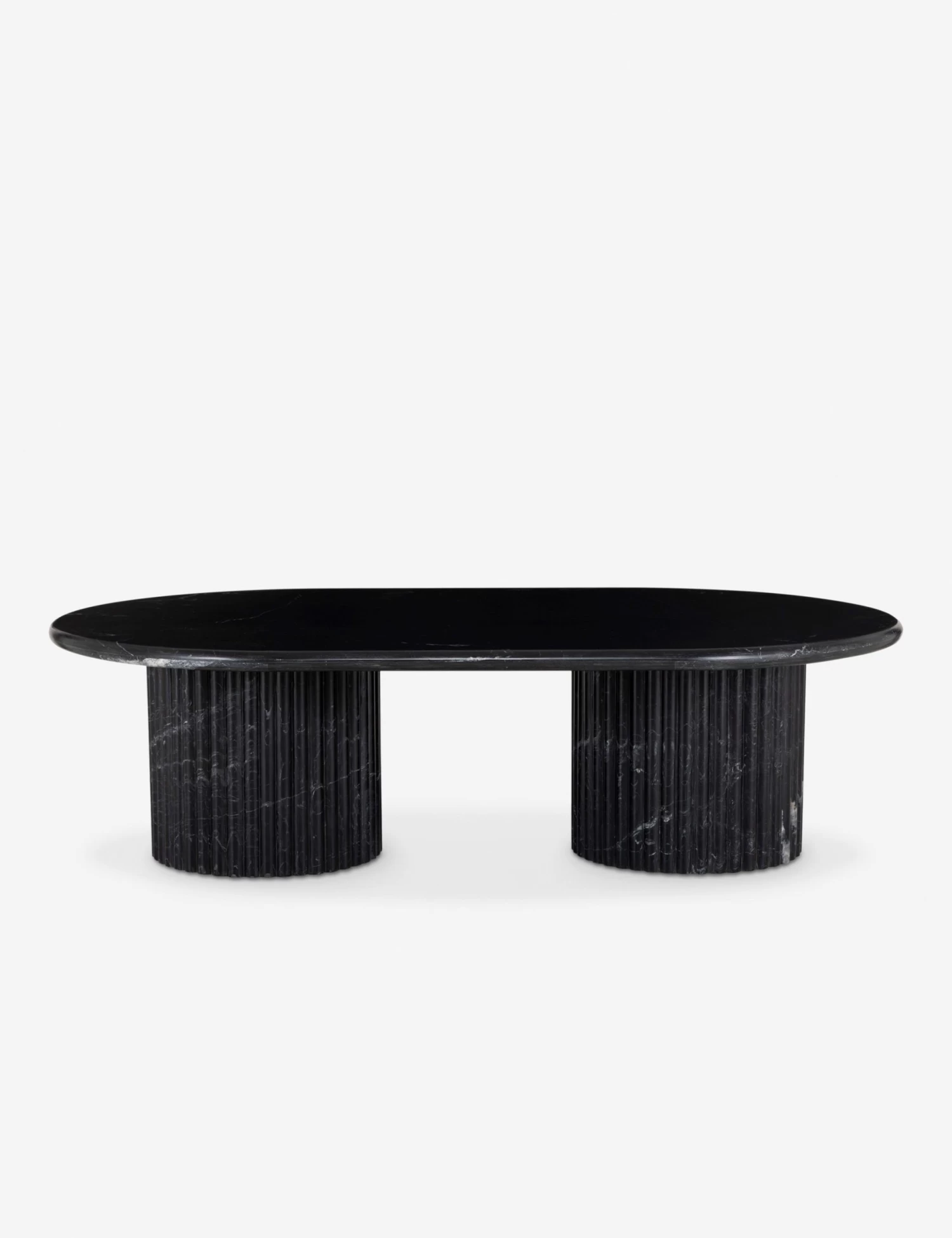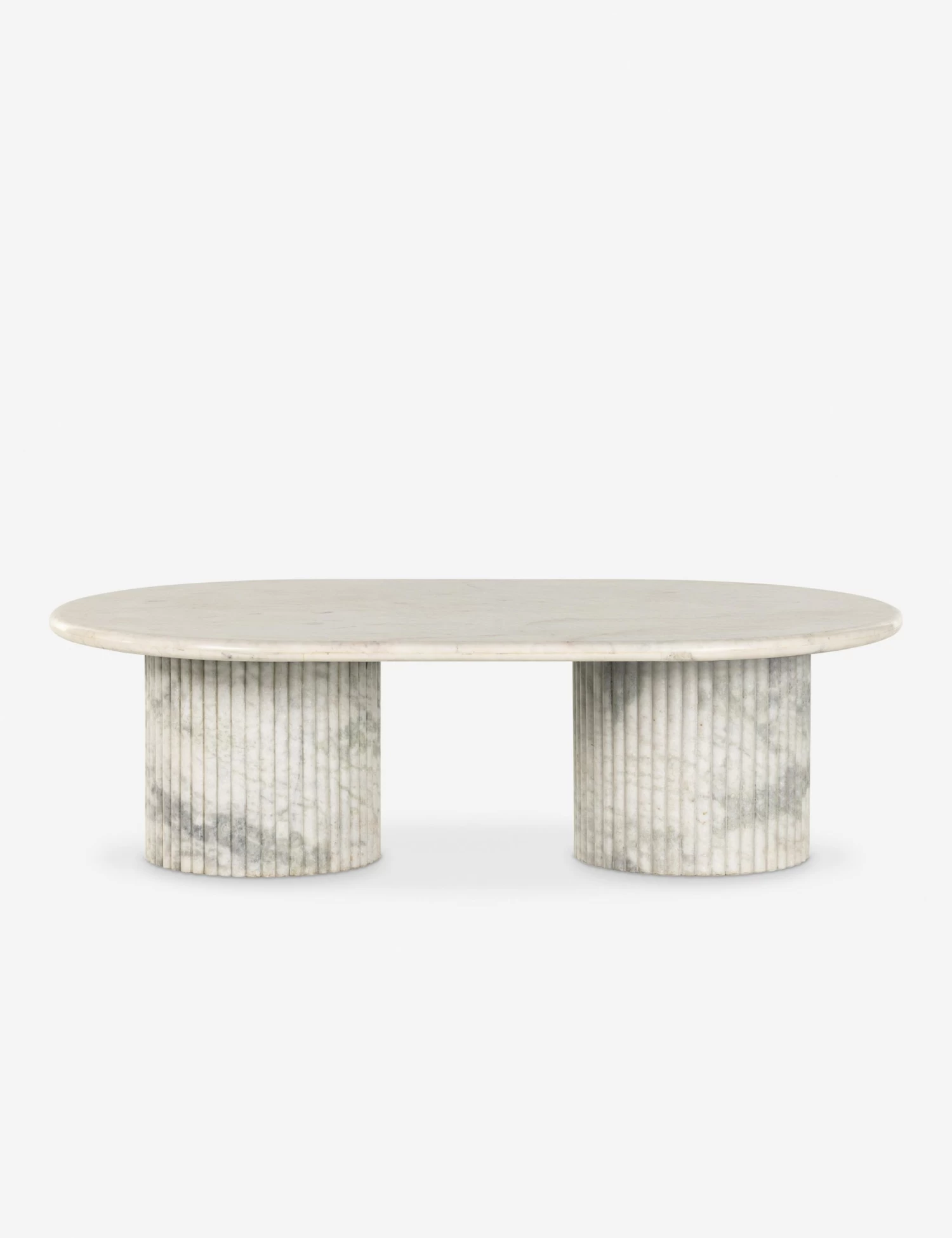 Set a foundation for elegant design with this solid marble coffee table. An oval top makes this coffee table the perfect anchor for entertaining while the fluted columns add drama and texture to the mineral-veined stone. Each piece of marble is unique, offering sophistication with a singular touch for your living room.