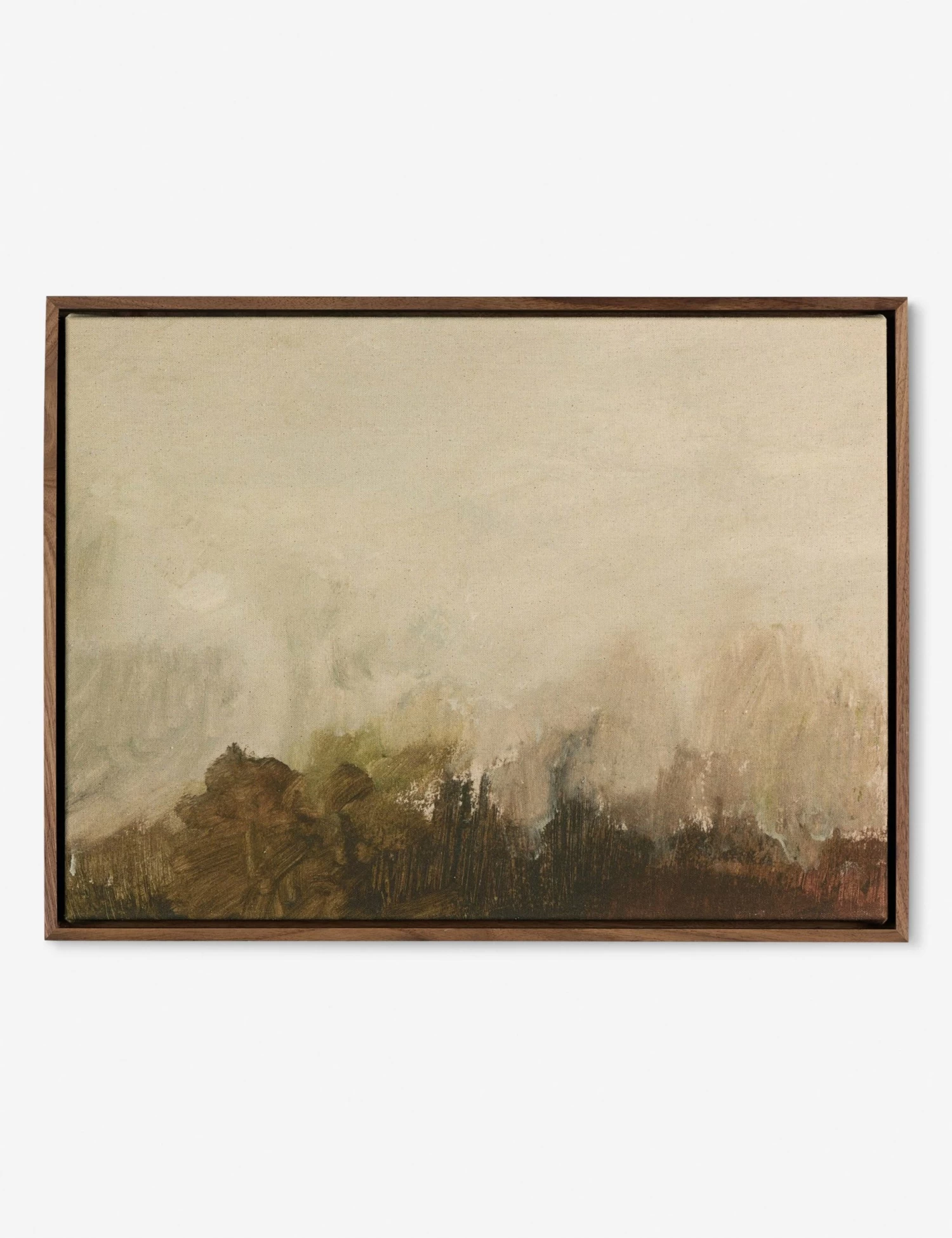 Moody tones and a soft, atmospheric composition evoke a sense of grounded calm in this piece by Dan Hobday. The earthy palette blends beautifully into modern and organic wall art collections. This artwork is printed on raw canvas and framed in rustic walnut for added depth and warmth.
