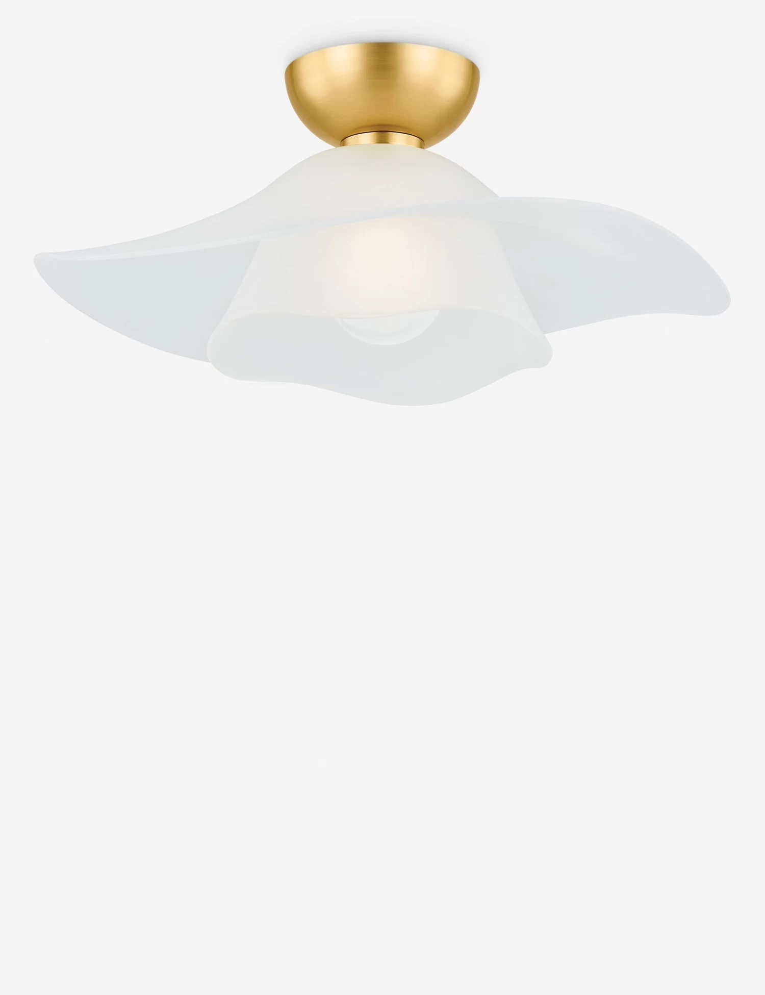 A flowing floral silhouette defines this elegant flush mount fixture. The nested glass shades reflect and filter light, creating a bright ambiance overhead. A brass-finished canopy completes this compact ceiling light with the perfect touch of polish.