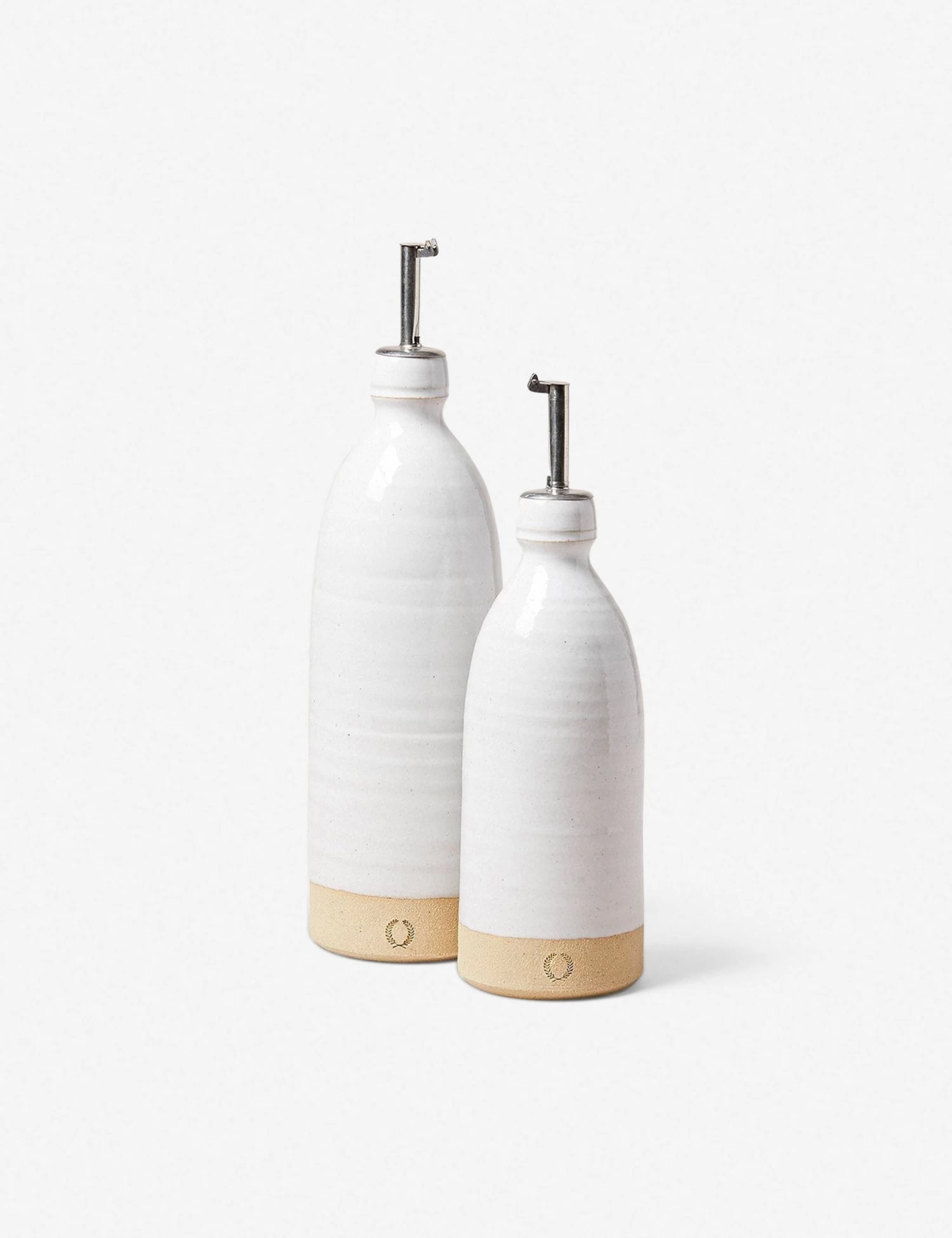 Vermont-based studio Farmhouse Pottery creates handcrafted accents and table essentials with rustic charm. This handy oil bottle is wheel thrown, dip glazed, and features a stainless steel dispenser to create a durable, versatile piece that can sit on your counter or dining table.