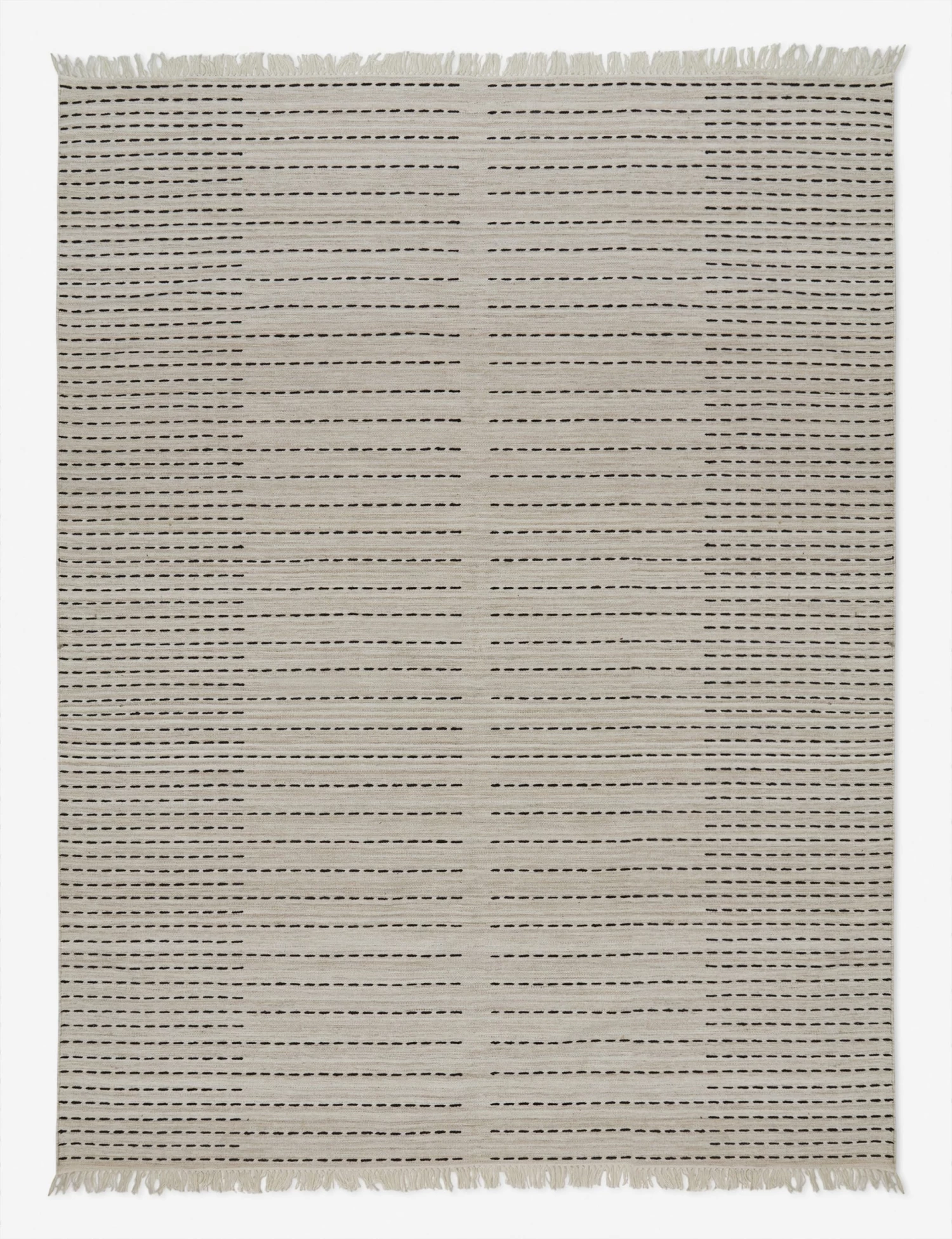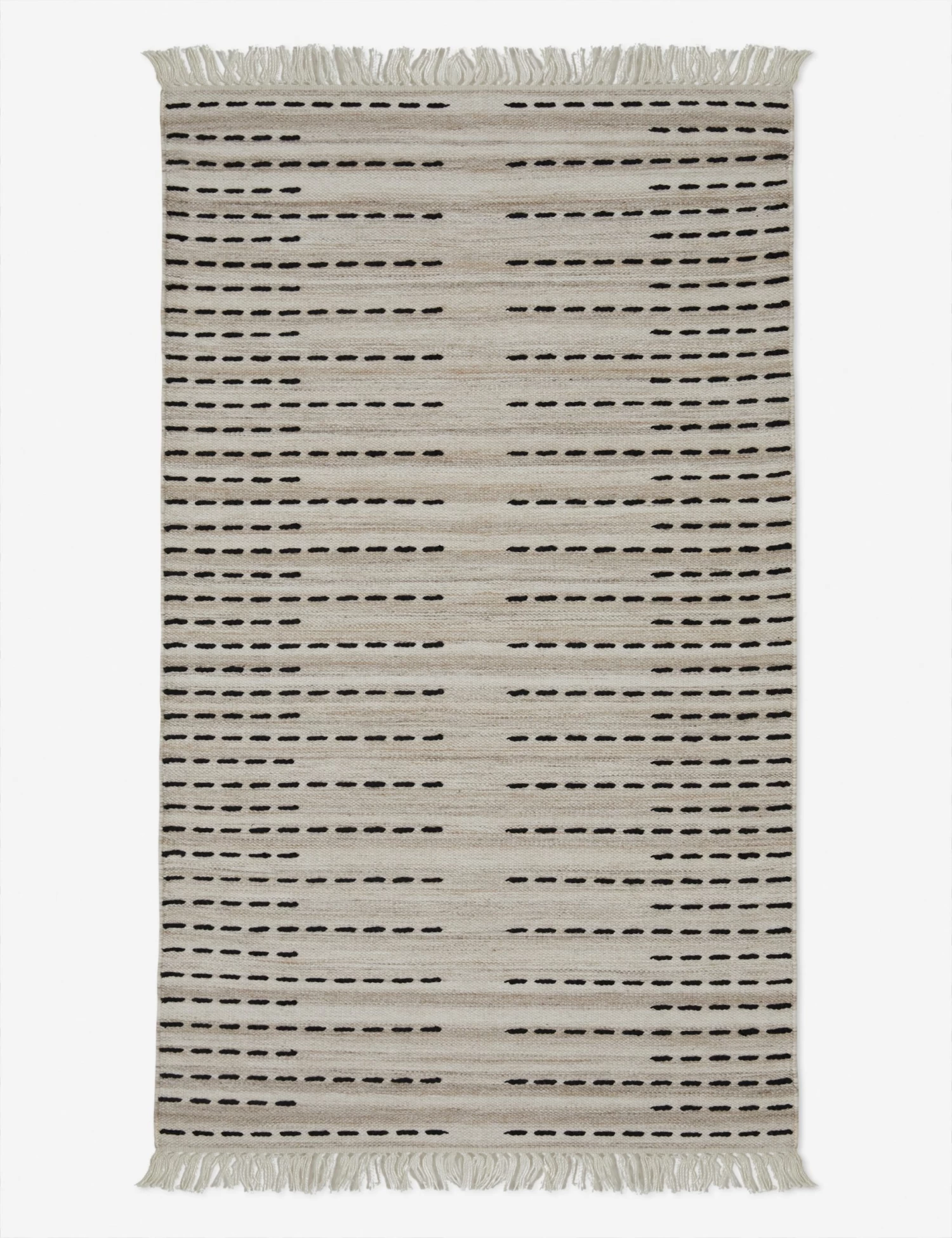 Add a chic edge from your patio to the kitchen with this versatile handwoven floor rug. Dashed lines create a symmetrical statement that catches the eye, offering a modern rug with an easy-care appeal.