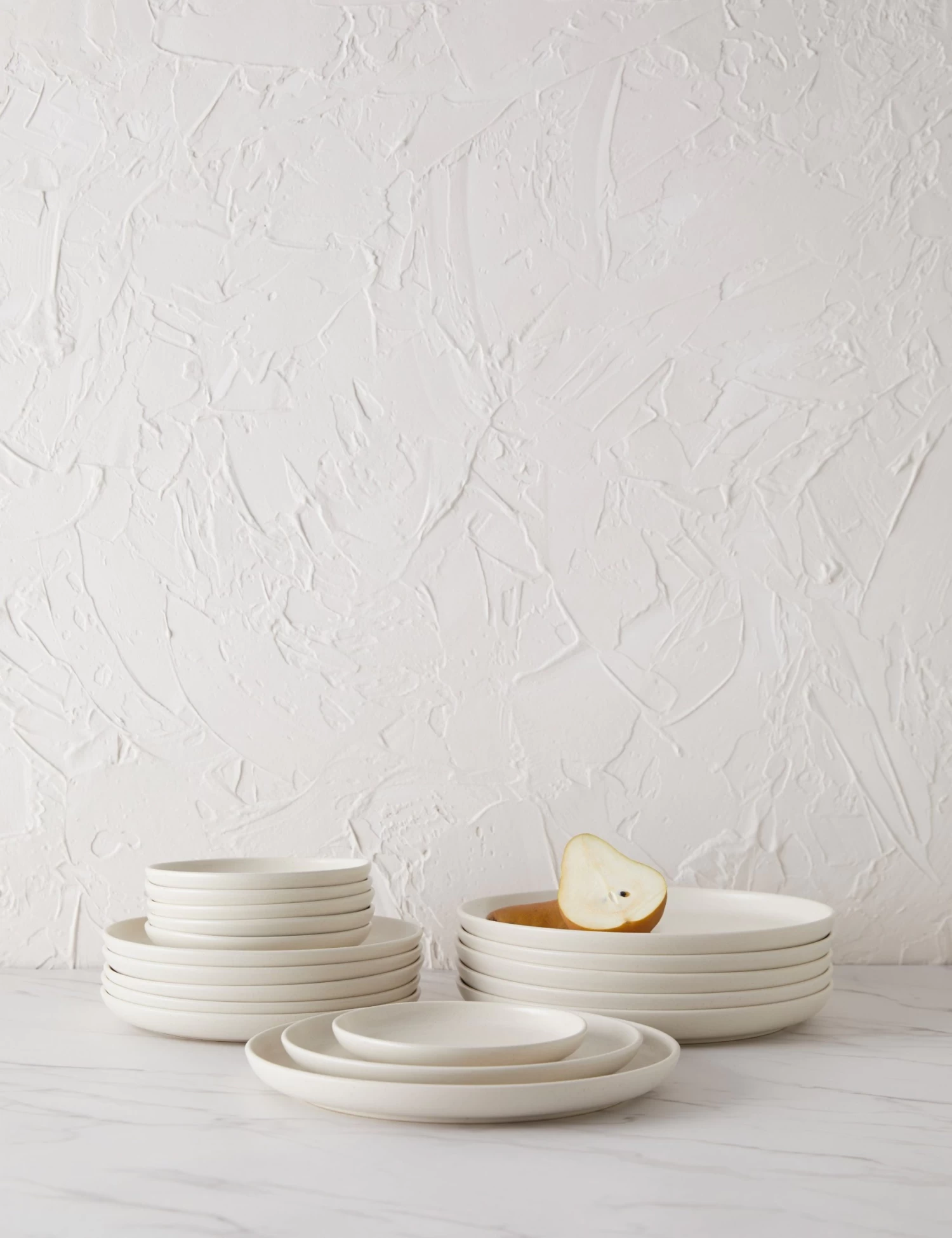 From Casafina, the Pacifica dinnerware collection features clean line designs marked by a refined balance and finish, lightly speckled for a distinctly modern look. Fashioned from stoneware to be durable and practical, this plate set features six dinner plates, six salad plates, and six bread plates for elevated everyday bites.