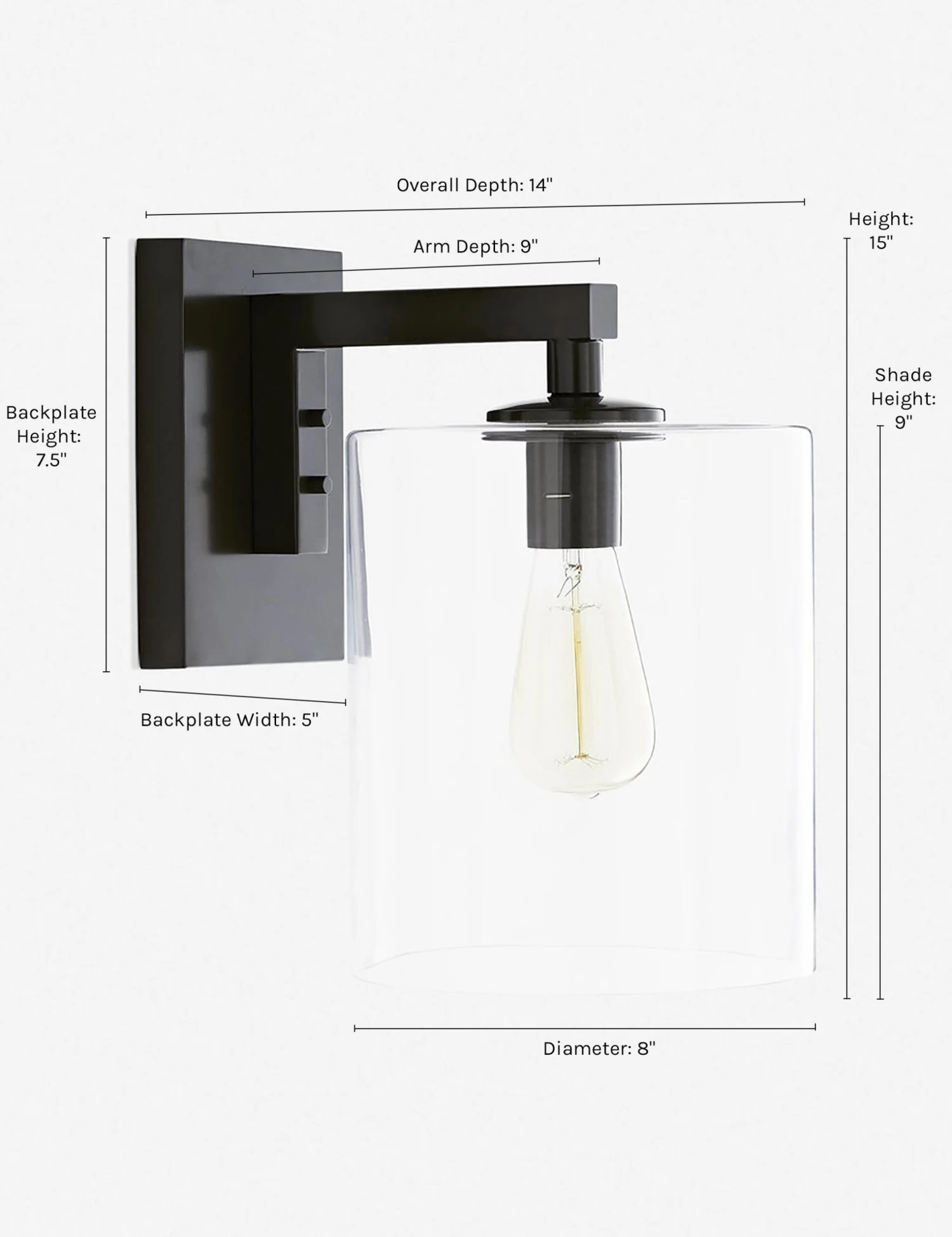 A clear glass cylinder shade give this single-light wall sconce a more modern look. How we’re styling it: doubled up to frame your favorite mirror or painting, with retro Edison-style bulbs.