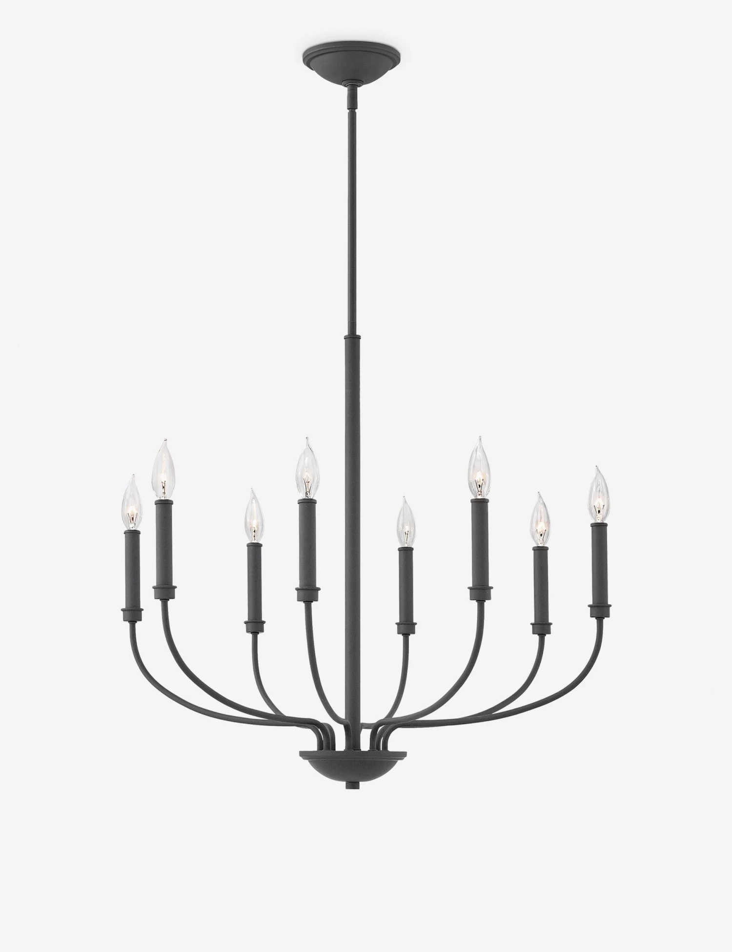 With an open silhouette poised for elegance, the Parsons chandelier showers the room in light. Candle-like stems rise from the streamlined frame for an airy presence overhead. This traditional chandelier design is an ideal statement piece for a tailored look where classic touches fold into a timeless curation.