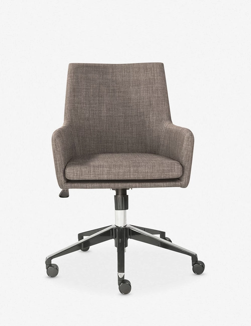 A nod to mid-century style, this classic armchair gets a modern office upgrade with a polished aluminum base, wheels, and a tilting function. A removable cushion allows for easy cleaning, while low arms provide maximum comfort even on your busiest days.