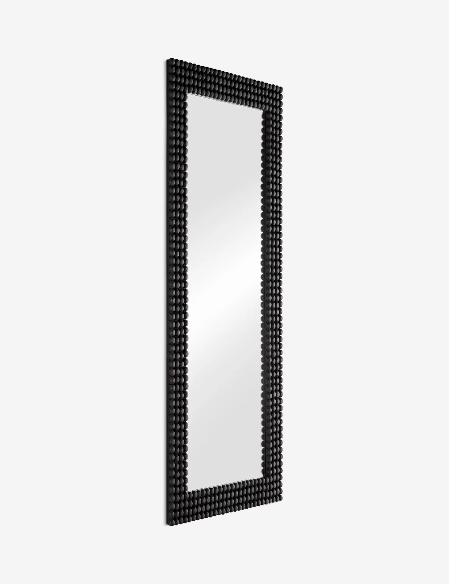 The Paxton mirror brings chic texture to modern design with its beautifully crafted wood frame. The hand-carved knobs are finished in a stunning black stain for tone-setting impact. Mount or lean this floor mirror from your bedroom to lounge to create an artful statement that opens up the room.