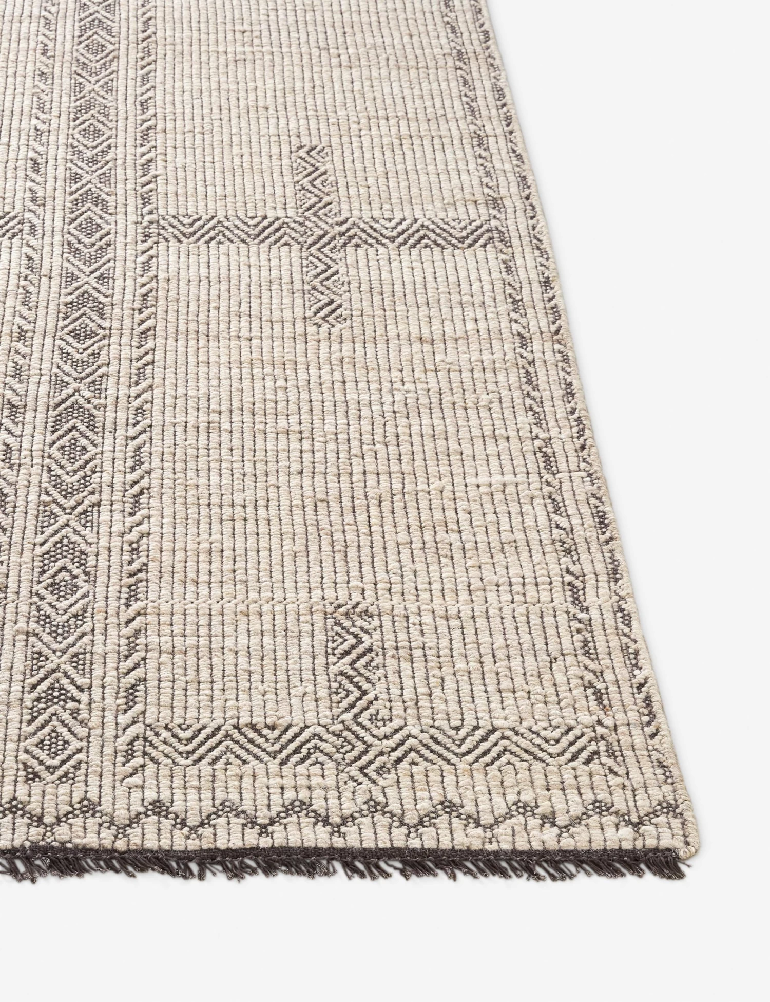 Bring a traveled air to your space with this handwoven rug. The geometric motifs and subtle fringe fashion a timeless look that folds into transitional or modern decor with elegance. We love the neutral tones for underpinning your space with soft impact and a versatile foundation.