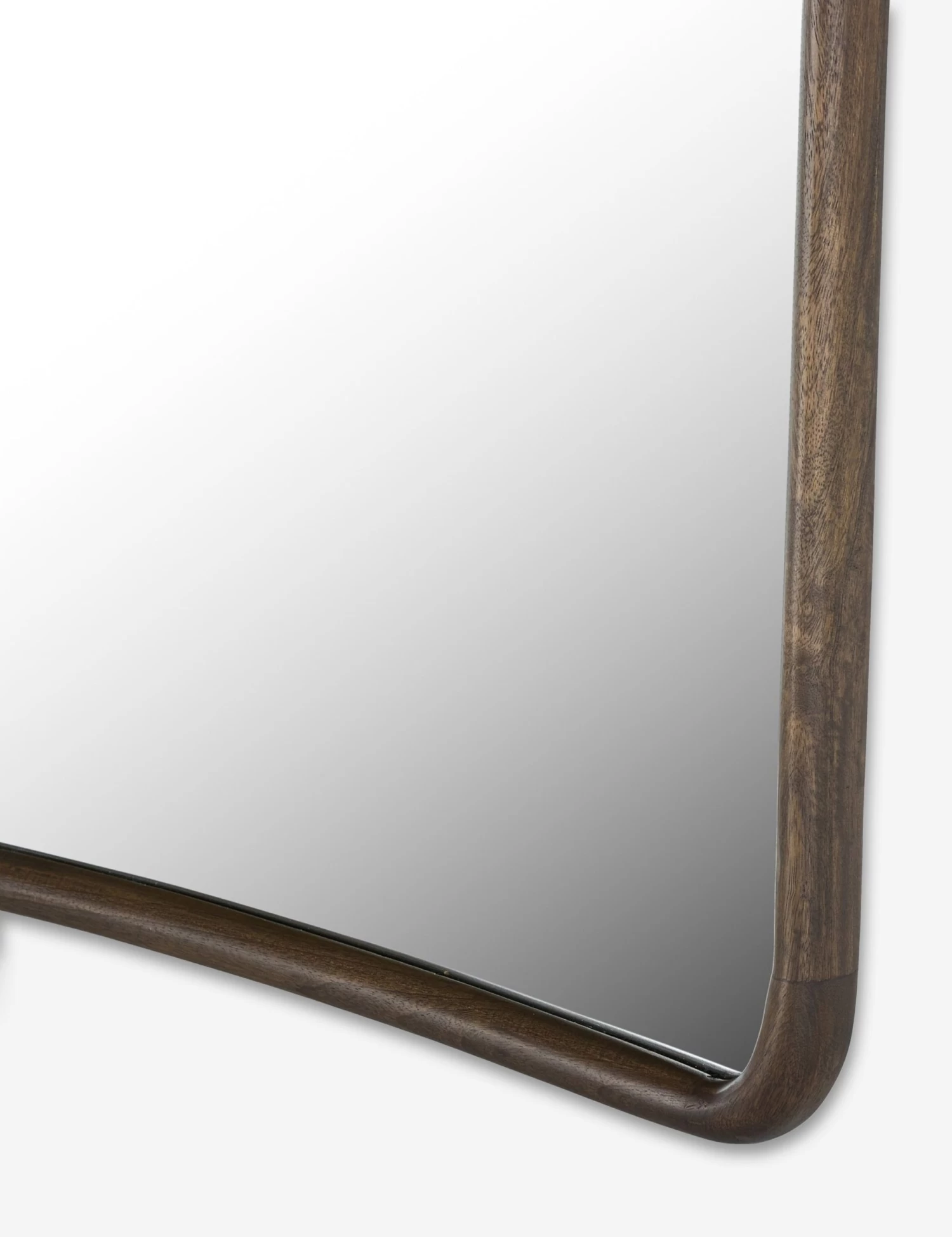 Sleek yet substantial, this mantel mirror features a gently arched base and rounded corners for a thoroughly refined silhouette. The slim metal frame lends a modern edge, balancing soft curves with clean lines. Bold in scale with a quiet presence, it brings light, depth, and a polished finish over a mantel, console, or dresser.