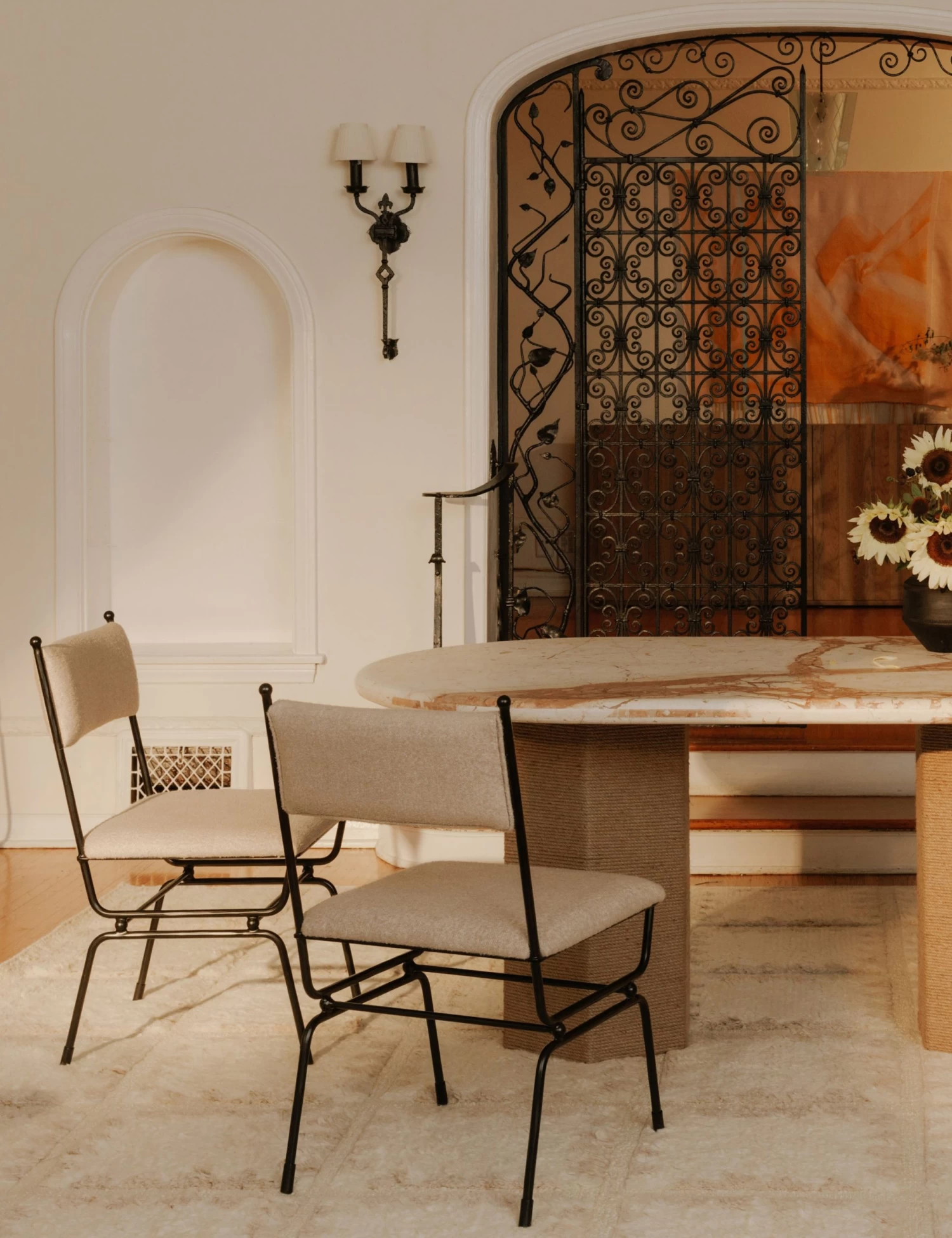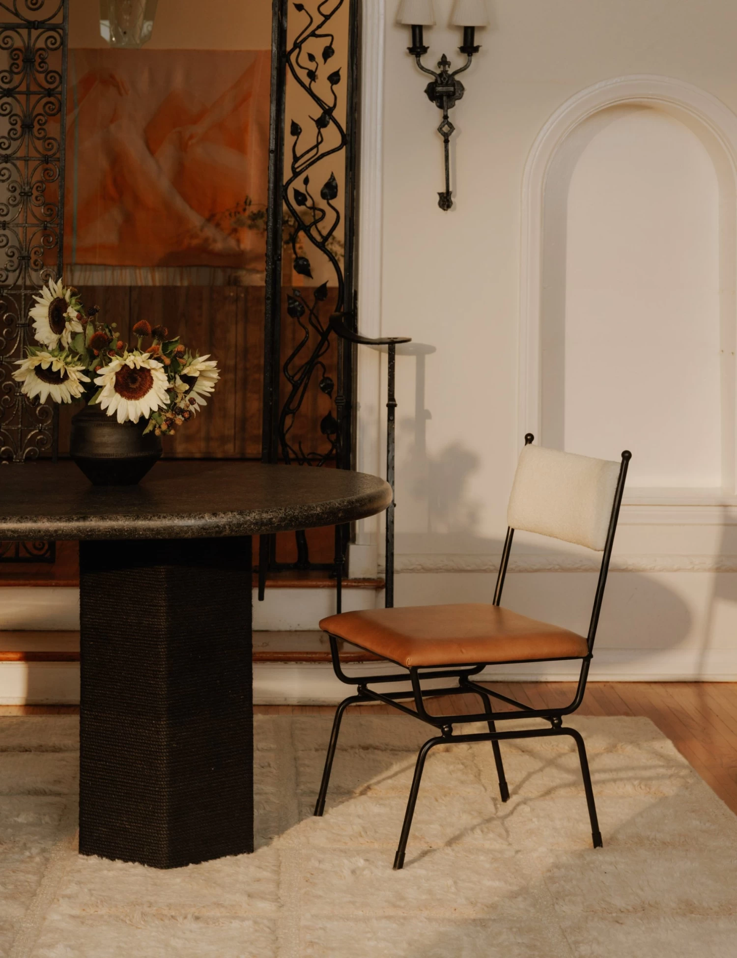 Gillian Segal brings her distinct blend of modern eclecticism and keen eye for delivering the unexpected to this collection for Moe’s. The Posta dining takes its name from Italy’s Posta Vecchia hotel, steeped in historical elegance. The hammered metal frame fashions a sturdy dining seat with finial details and fine upholstery for a touch of Italian finesse at your table.