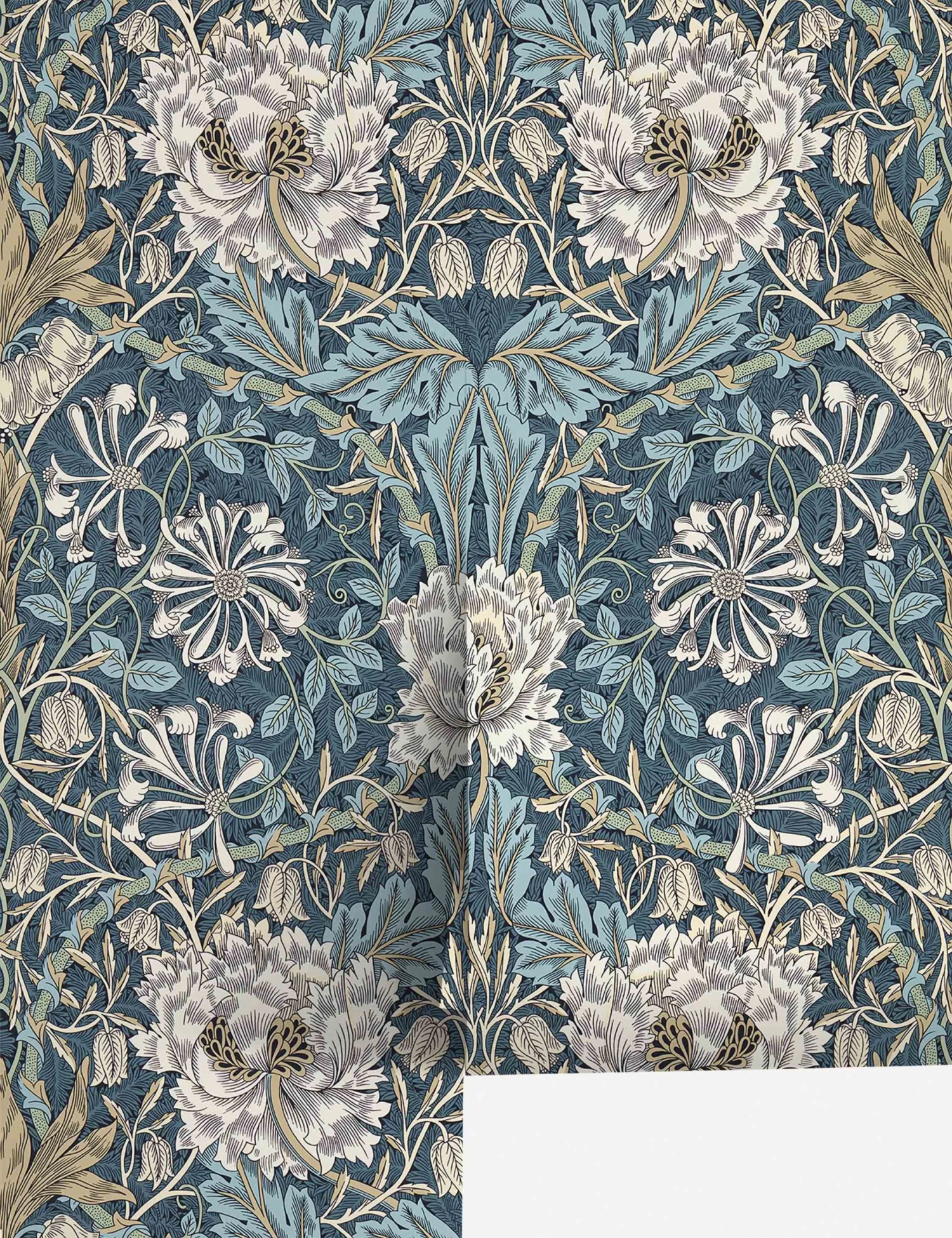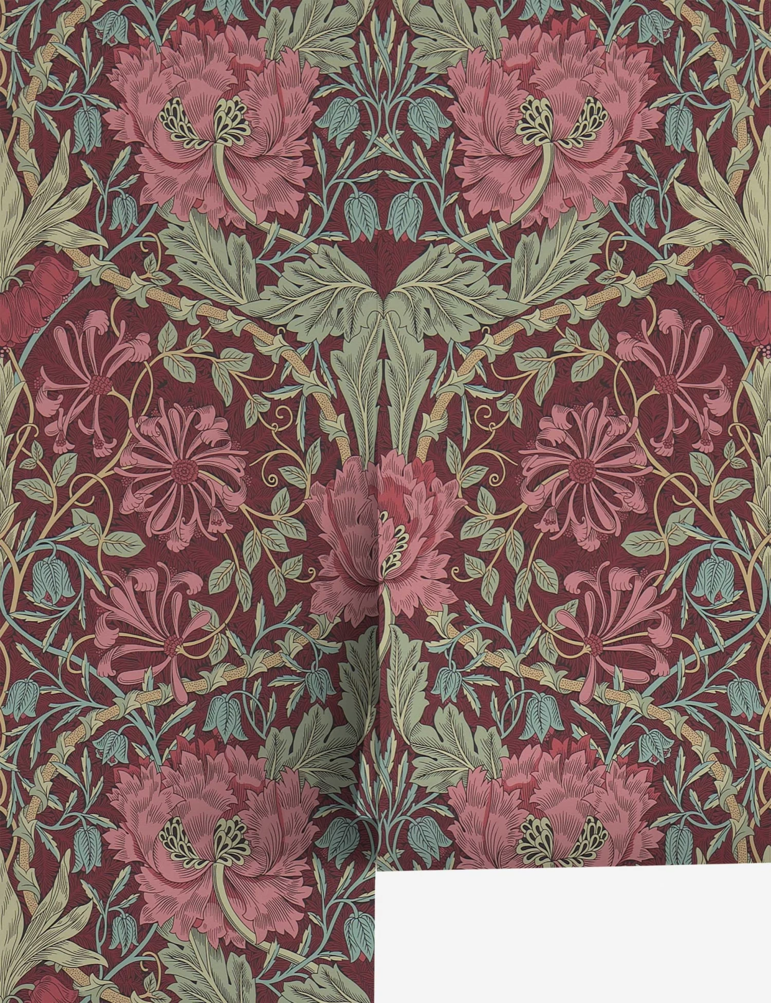 The work of 19th-century icon William Morris made Morris & Co. nearly synonymous with the Arts & Crafts movement, prioritizing artistry and quality in the design and making process. This collection of wallpapers revives, revises, and re-imagines timeless patterns for a touch of sophistication throughout your home. A lush motif of honeysuckle and tulips brings an always-fresh elegance to this floral wallpaper.