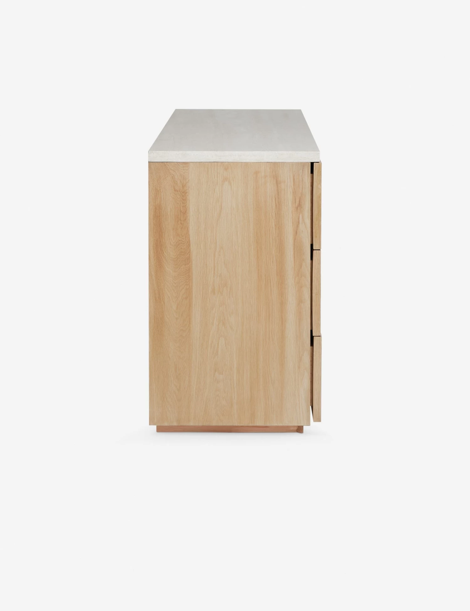 The Rayner six-drawer dresser is set to bring an artfully modern touch to earthy and coastal motifs. The natural oak design is perfectly versatile, enhanced with linear details, and built to offer ample space for stashing clothing and accessories.