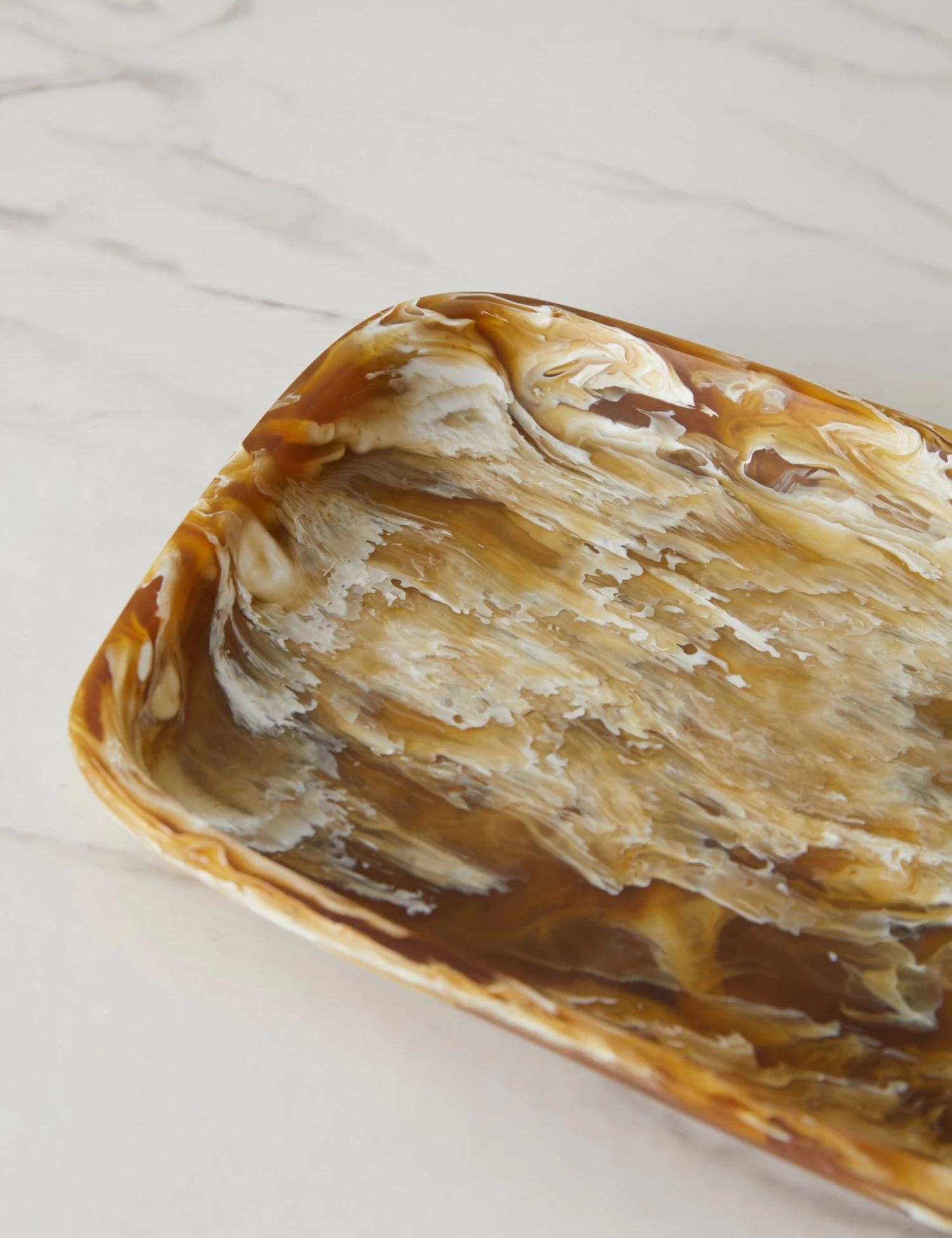Atlawa makes beautifully formed resin creations in Mexico. This kitchen collection features naturally inspired colors that blend and swirl in a marbleized pattern. Showcase your culinary prowess on a platter that celebrates style and elevates the everyday into a unique design moment.