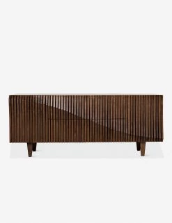 When it comes to dimensional style, this sideboard cabinet has you covered. The deep wood tones are instantly elegant, with deeply grooved, slatted cabinet fronts for an undeniably modern appeal.