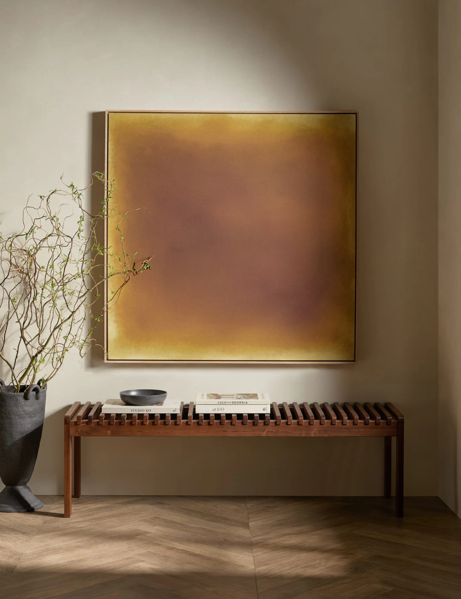 The simplicity of warm colors sets the tone for this framed wall artwork. Beautiful in a dining room or living area, the piece offers a rich hue, from the original done in watercolor and ink to create an ombre effect that lightens as it approaches a dark finished wood frame that lends this abstract wall art a touch of casual ambiance.