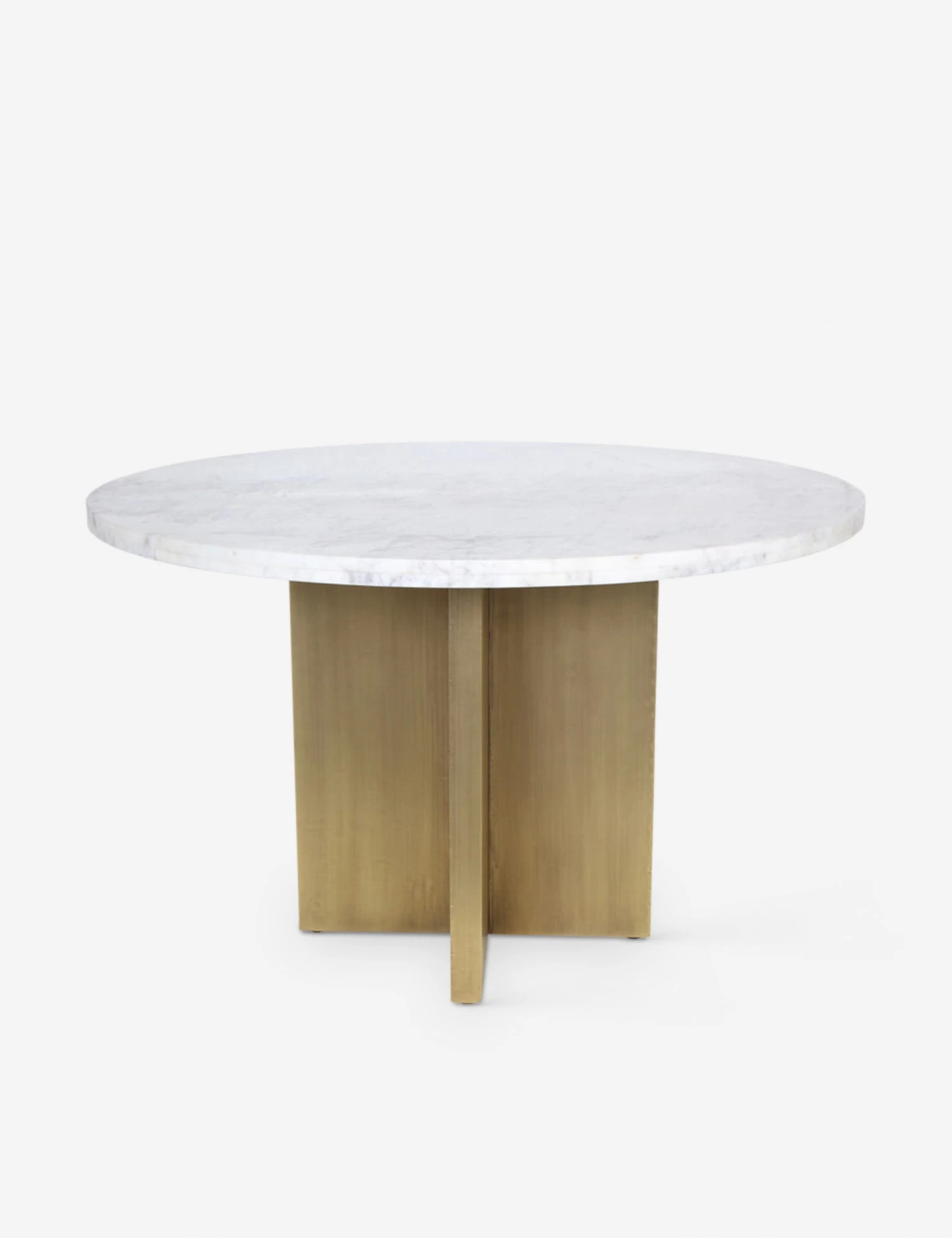 Luxe meets modern in this timeless dining table. The brass finish of the angular base complements the sleek marble top offering a polished edge that invites refinement. This marble table is a great way to bring a touch of glamour to small space dining with room for six.