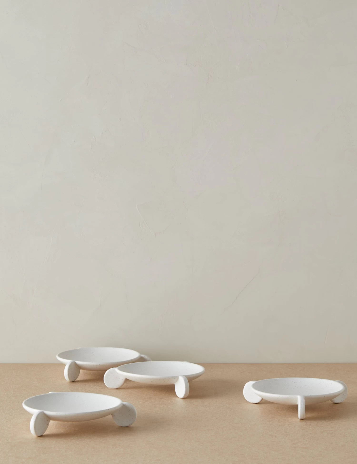 Bring a playful touch to your table with the Shapeshifter appetizer plates. Sculpted feet elevate the plate with an artful edge, offering a unique elegance to small bites and starters. This dish set is from our exclusive Sarah Sherman Samuel collaboration and features all the trademarks of her warm, edited style.