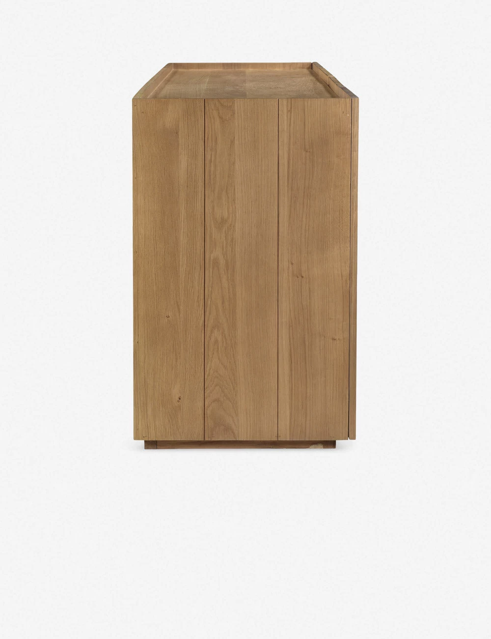 Fashioned from solid oak planks, this sideboard cabinet is versatile, refined, and grounded in natural grain appeal. With cabinet doors opening to spacious interior shelving, this modern sideboard buffet is full of storage potential in a crisp design. Layer this piece with texture-rich decor and linens or sparsely style it for a look that highlights organic minimalism.