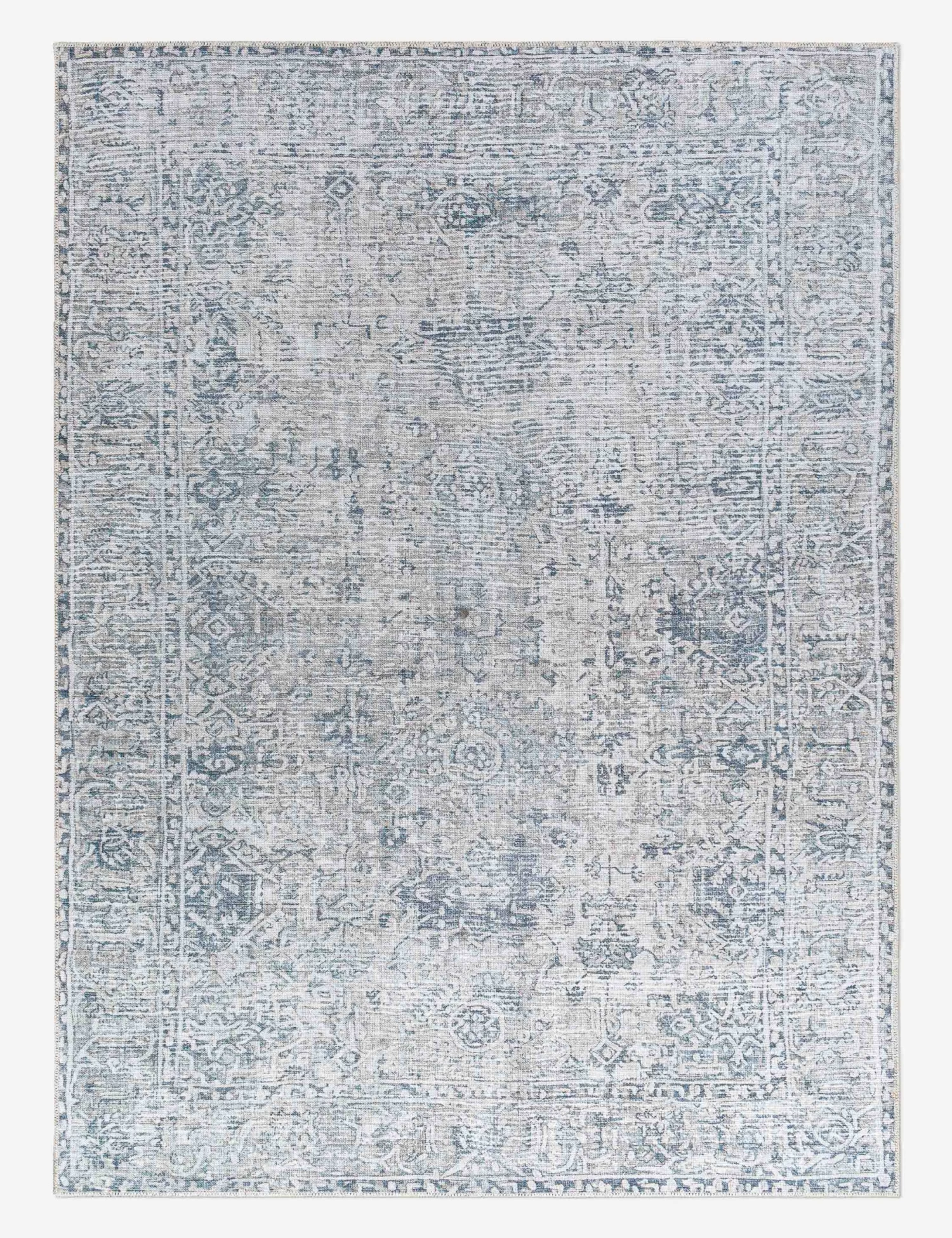 A muted palette pairs with traditional patterns to create a seasoned look in this versatile rug. Its synthetic construction is both soft and durable, offering a modern rug to elevate everyday design from your entryway to a bedroom or sitting area.