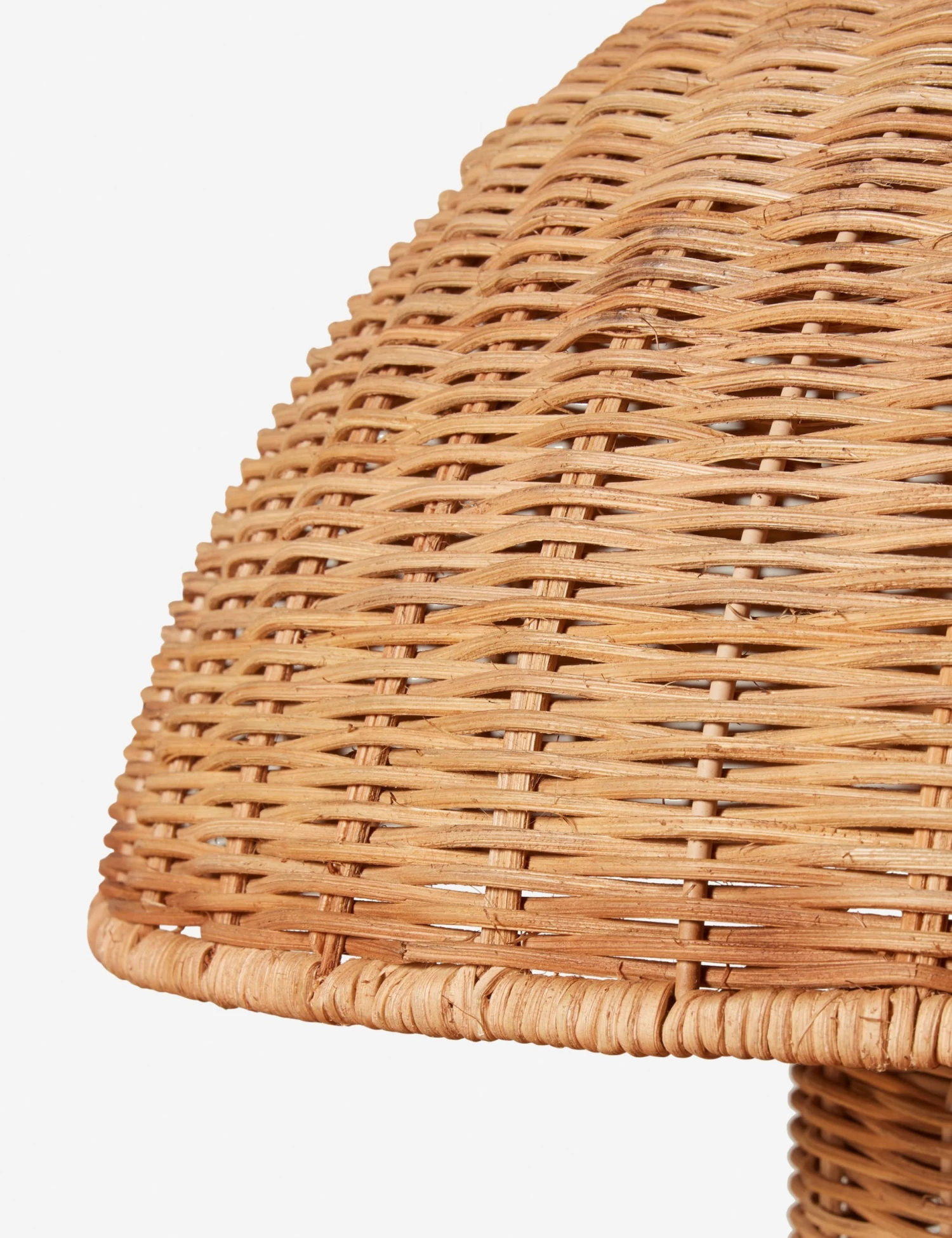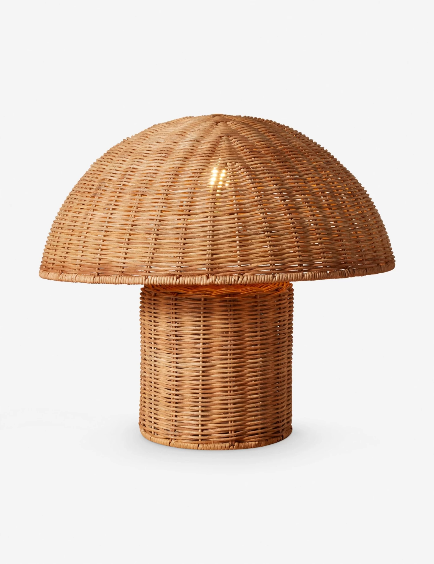 A dome shade and cylindrical base bring a bold shape to natural texture in the Solveig lamp. Handwoven from sustainably harvested rattan, the monochrome design brings ambient warmth with a soft touch. This small-form lamp makes a versatile addition to richly layered spaces.