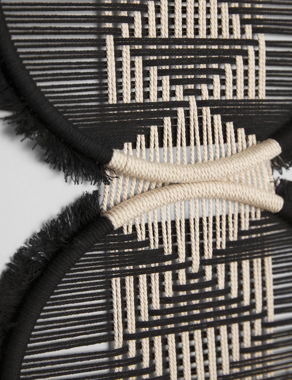 Unique and intricate, this wall hanging is handmade in the Netherlands by textile artist Nom. Nom uses a single weaving technique to create textile wall art elements that bring dimension to your space. The Sipho woven wall hanging features a mirrored pattern in a double-ringed design that will add eye-catching texture to your wall decor.