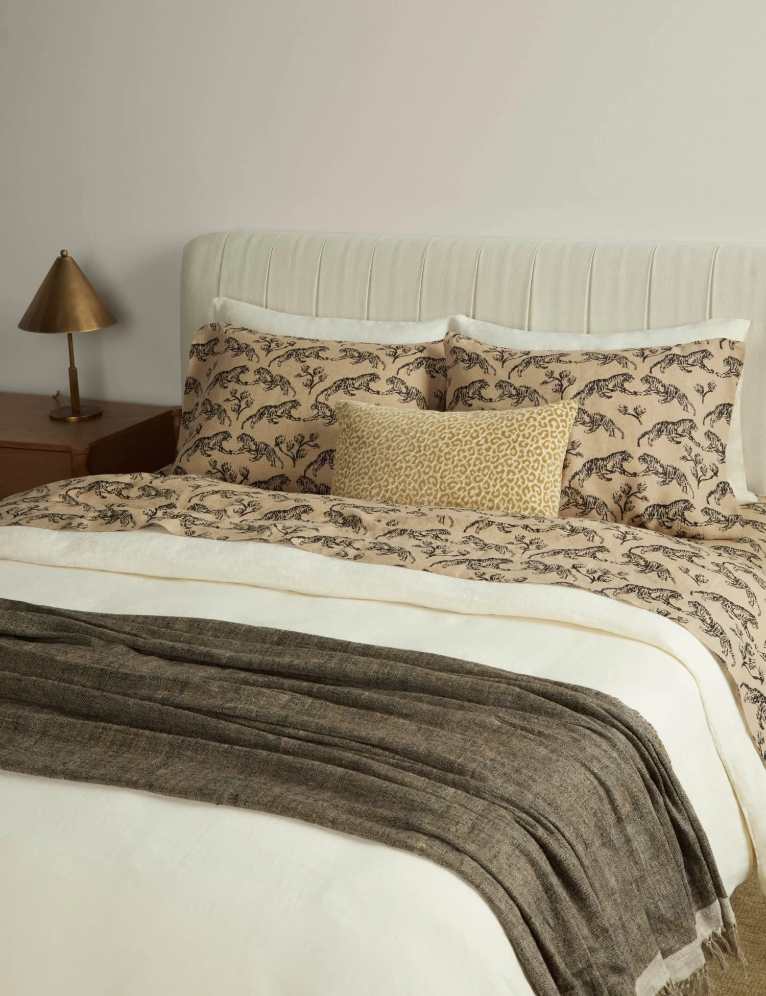 Vintage inspiration meets sustainable comfort in this hemp sheet set. Hemp is a forgotten fabric that is in revival because of its sustainable impact and durable fibers—meaning your bedding lasts longer. Drawn by Sarah’s son and styled into an intricate motif, the tiger print offers graphic intrigue for a sophisticated feel. This set is from our exclusive Sarah Sherman Samuel collaboration and features all the trademarks of her warm, edited style.