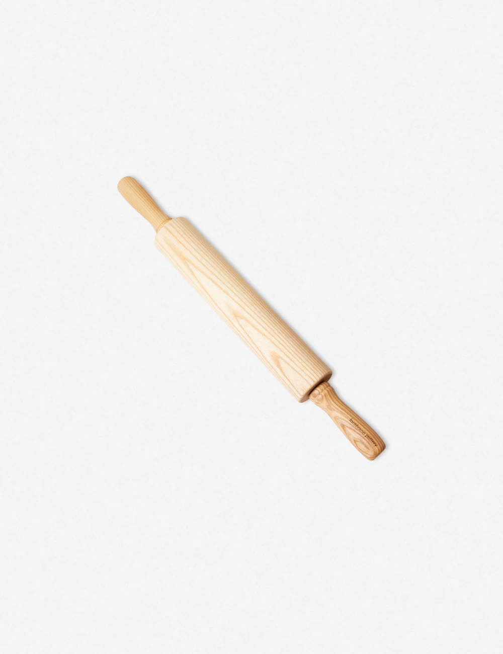 Vermont-based studio Farmhouse Pottery creates handcrafted accents and table essentials with rustic charm. Inspire your next bake with the timeless style of this ash wood rolling pin. The contoured handles provide an easy grip and smooth-rolling action—ideal for sharing family recipes and traditions with bakers of every age.