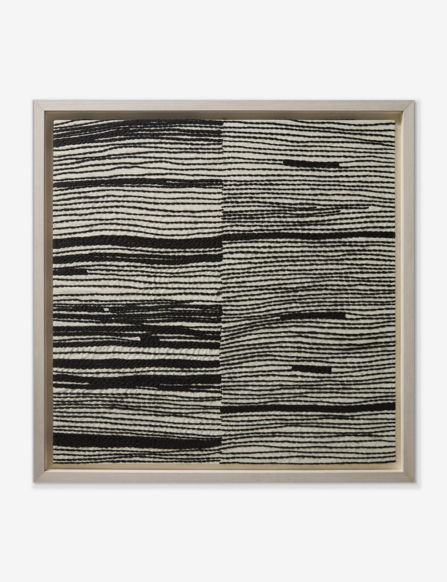 Need some textural intrigue in your wall decor? This textile wall art pairs a high-contrast palette with embroidered detailing for an eye-catching addition to the room. The striking design folds seamlessly into timeless curations or modern edits for an elevating touch.