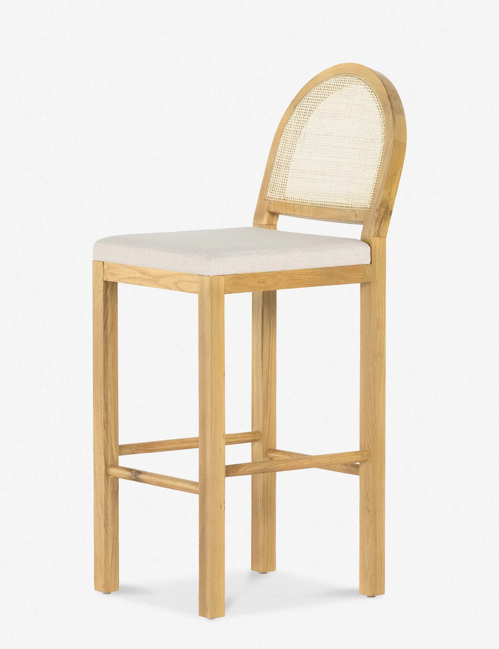 Honey-finished oak and an arched back with cane paneling inspire transitional appeal in the Verna Stool. The upholstered seat adds a comfortable touch for effortless warmth in any space, whether providing dynamic seating or styled as a kitchen stool.