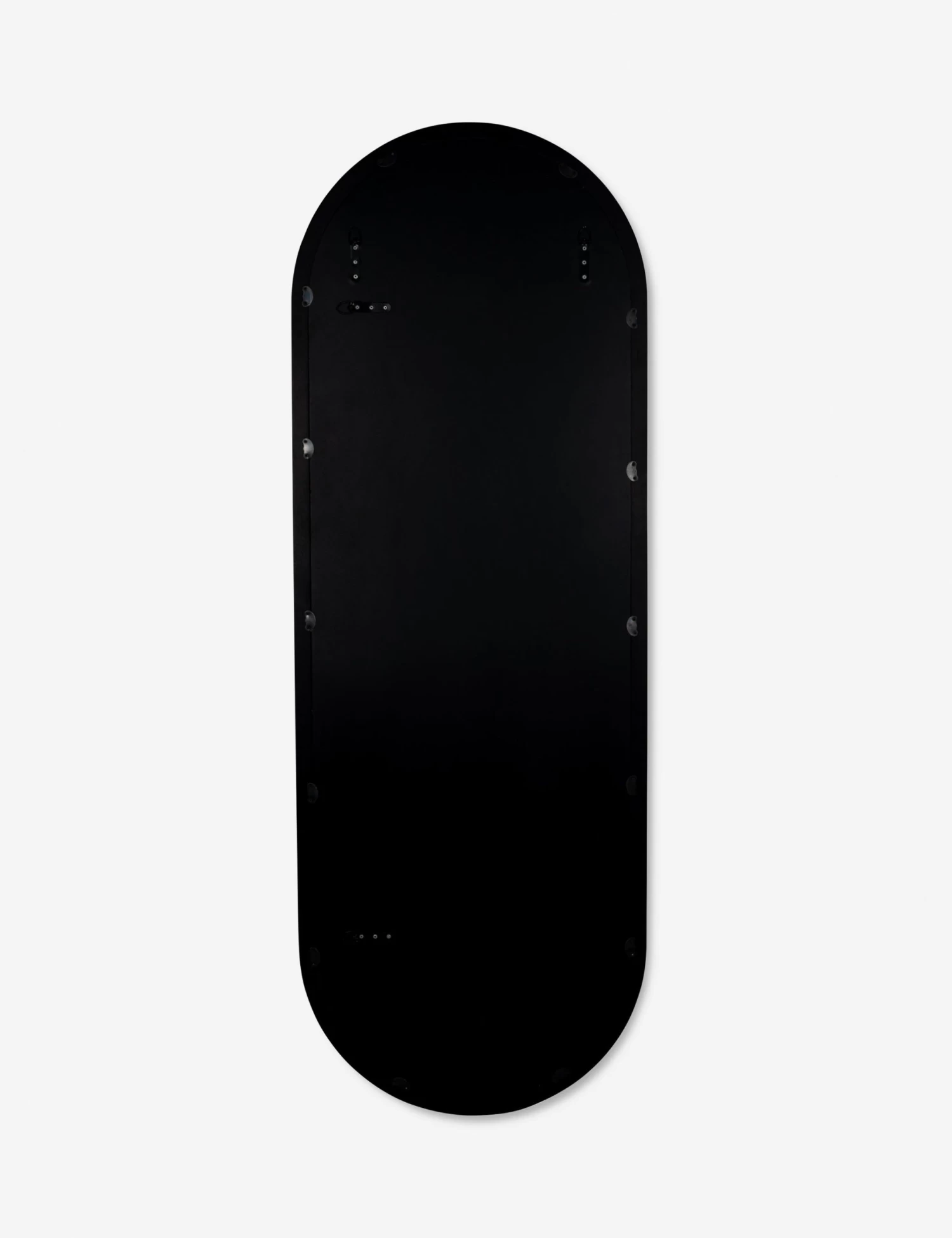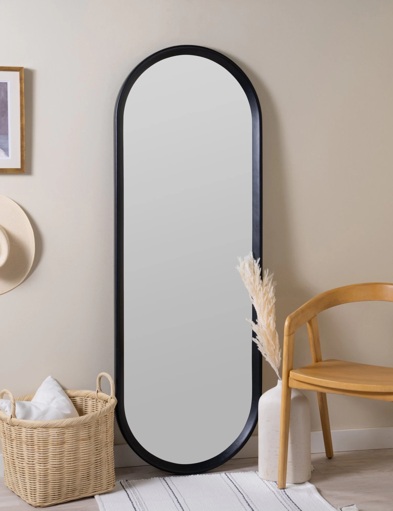 A practical touch with chic appeal—this stylish full length mirror is poised for impact. The black frame styles a bold look softened by its modern oval profile. This versatile mirror is the perfect way to brighten up a bedroom or office or bring a fresh dimension to your lounge.