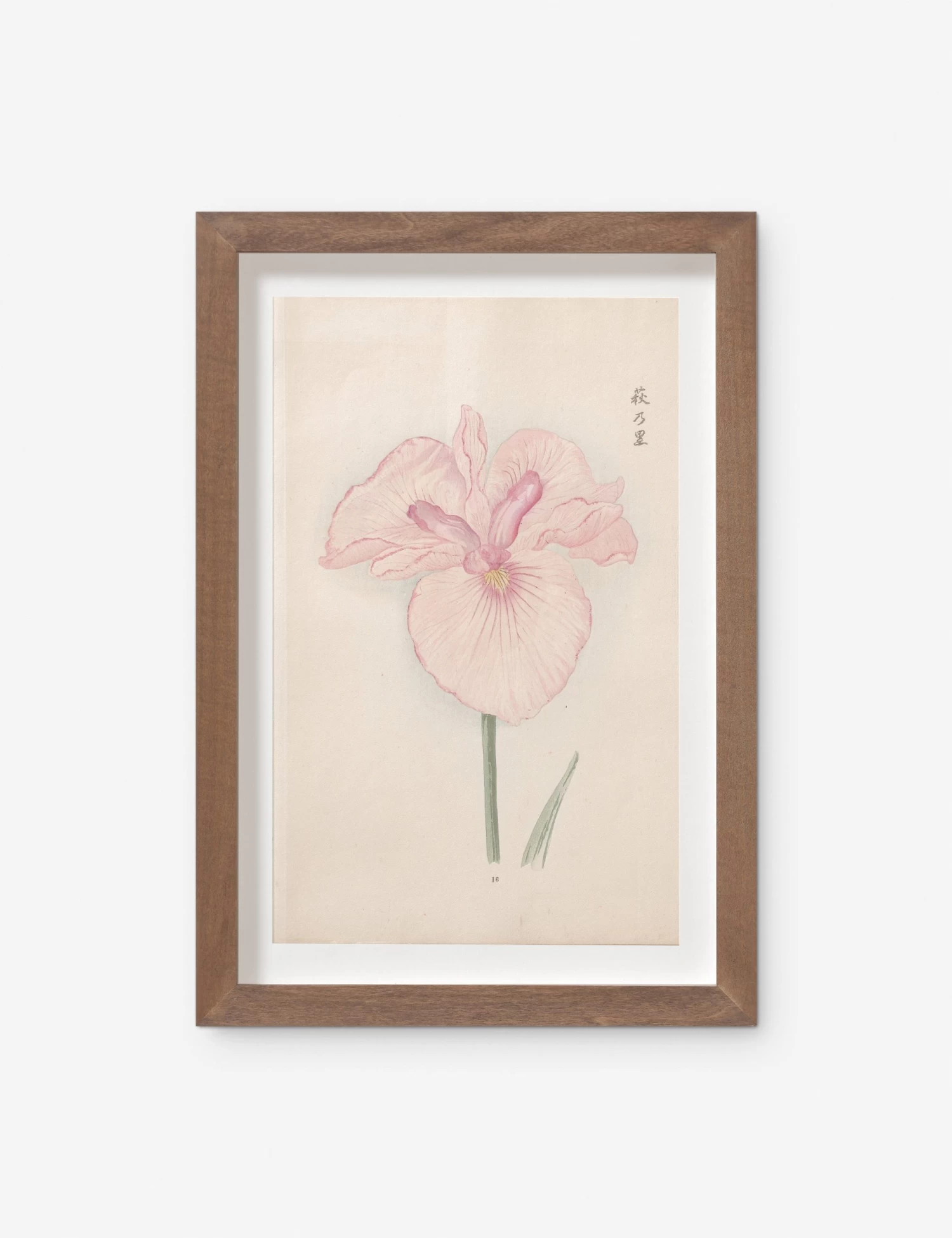 Visual Contrast is a Los Angeles-based fine art studio that produces limited-edition runs of high-quality wall art. This collection of iris paintings was painted by the Japanese botanist Miyoshi Manabu in 1921, offering a vintage touch to your wall decor. Each watercolor was painted on rice paper, adding to the delicate quality—framed in a modern walnut shadowbox and ready for any space from your home office to a bathroom or kitchen.