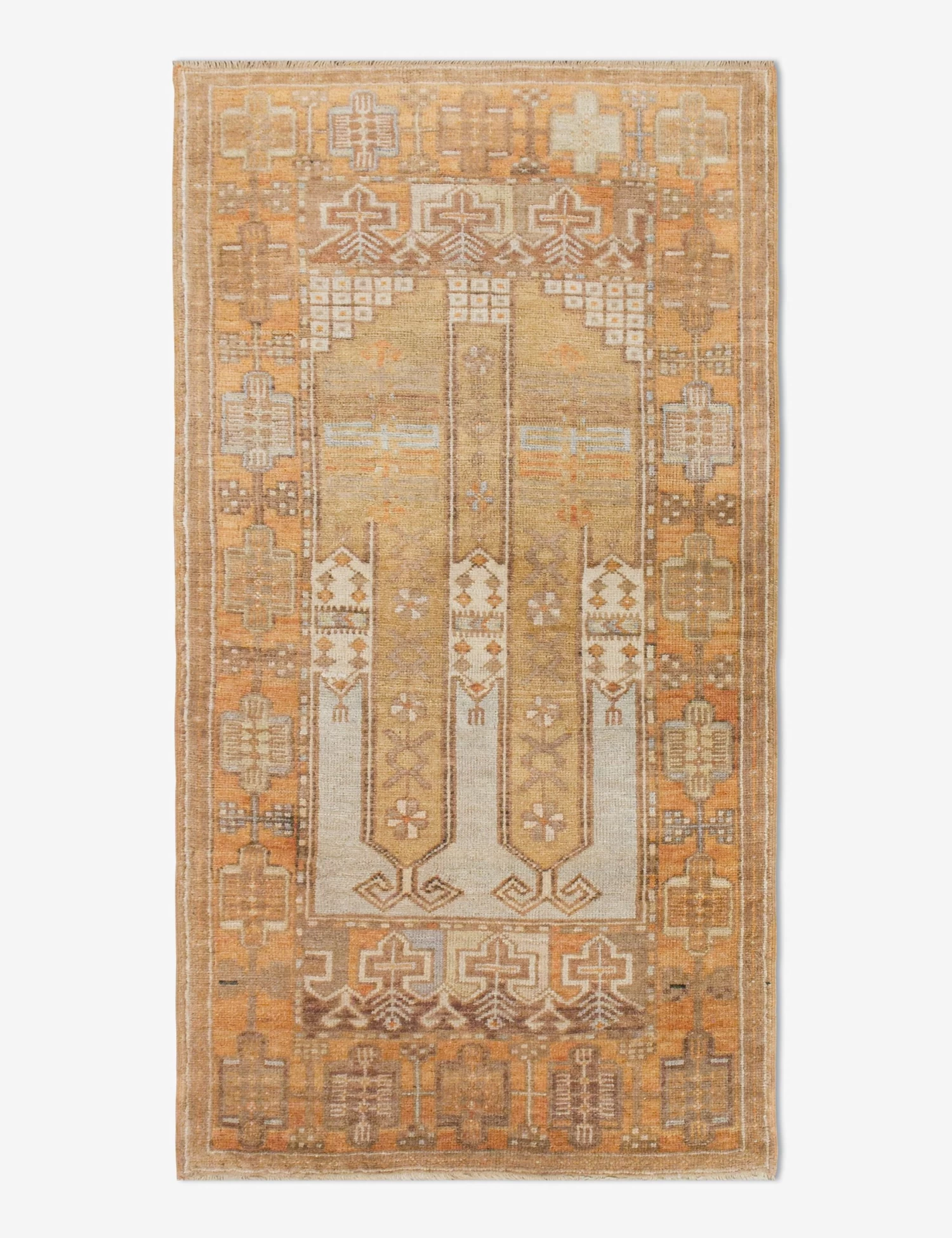 A vintage wool rug instantly transforms your space—adding warmth and rich color, all while feeling like a discovery from far-flung travels. Made entirely by hand in Turkey, this hand-knotted floor rug is truly an investment for your home, a stunning one-of-a-kind centerpiece to build and layer your style onto. The runner size is ideal for hallways or in the kitchen.