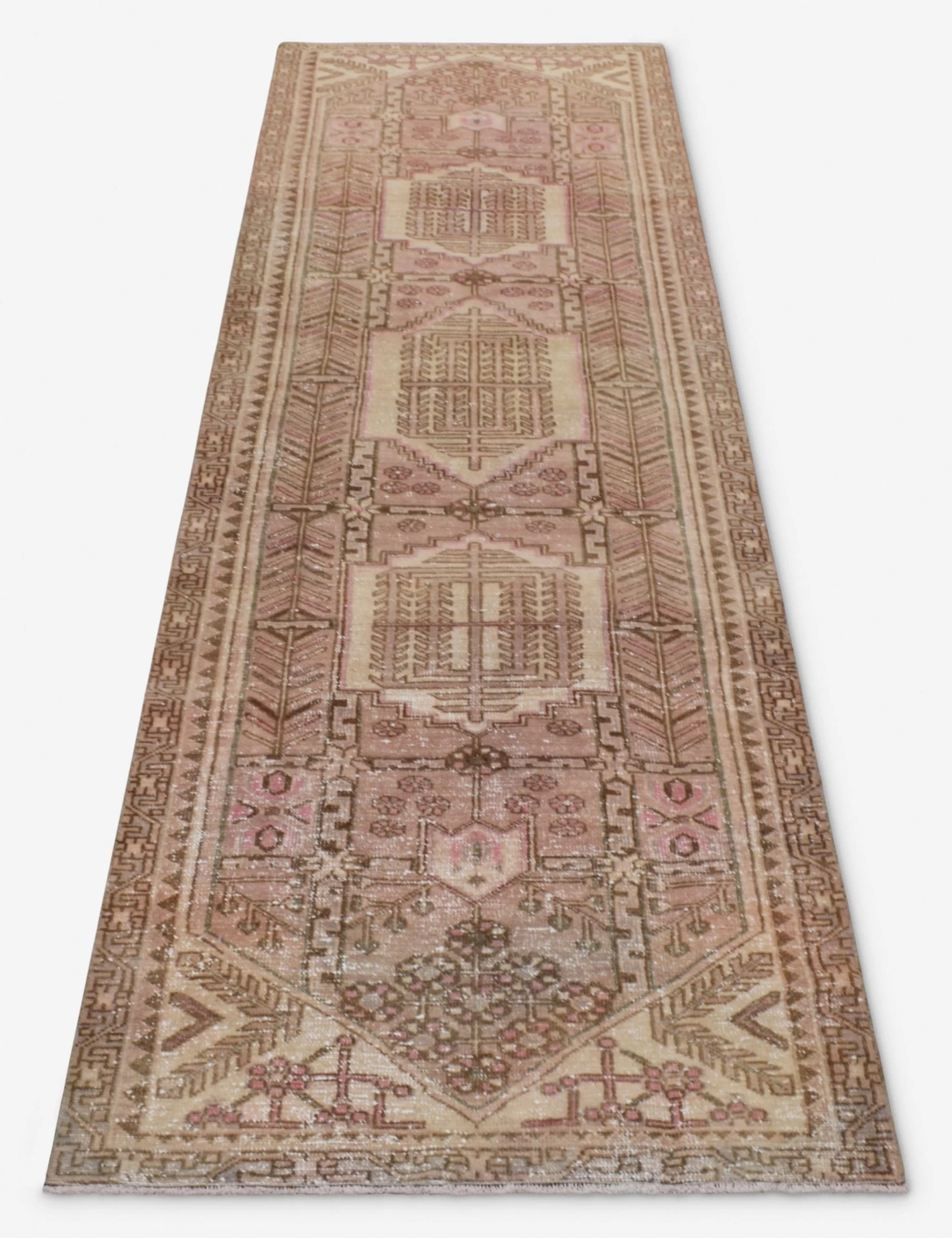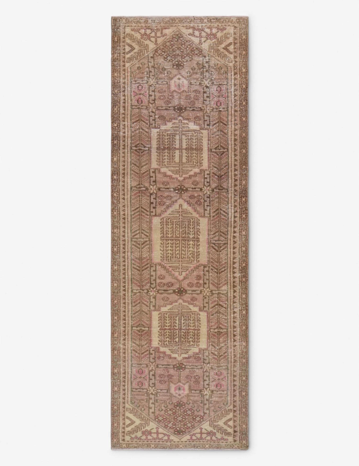 A vintage wool rug instantly transforms your space—adding warmth and rich color, all while feeling like a discovery from far-flung travels. Made entirely by hand in Turkey, this hand-knotted floor rug is truly an investment for your home, a stunning one-of-a-kind centerpiece to build and layer your style onto. The runner size is ideal for hallways or in the kitchen.