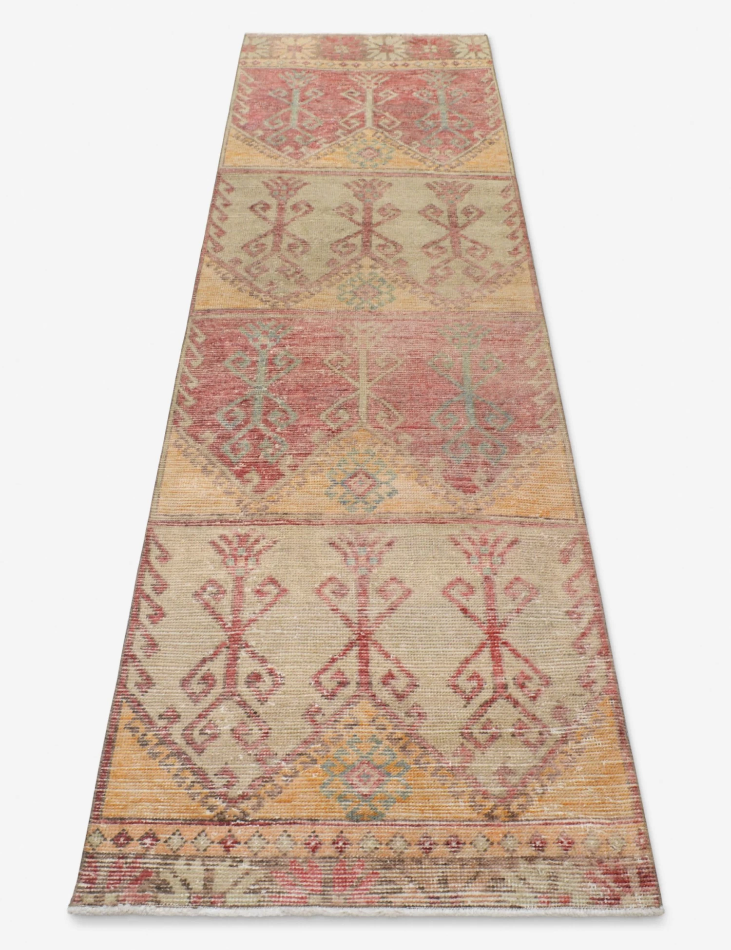 A vintage wool rug instantly transforms your space—adding warmth and rich color, all while feeling like a discovery from far-flung travels. Made entirely by hand in Turkey, this hand-knotted floor rug is truly an investment for your home, a stunning one-of-a-kind centerpiece to build and layer your style onto. The runner size is ideal for hallways or in the kitchen.