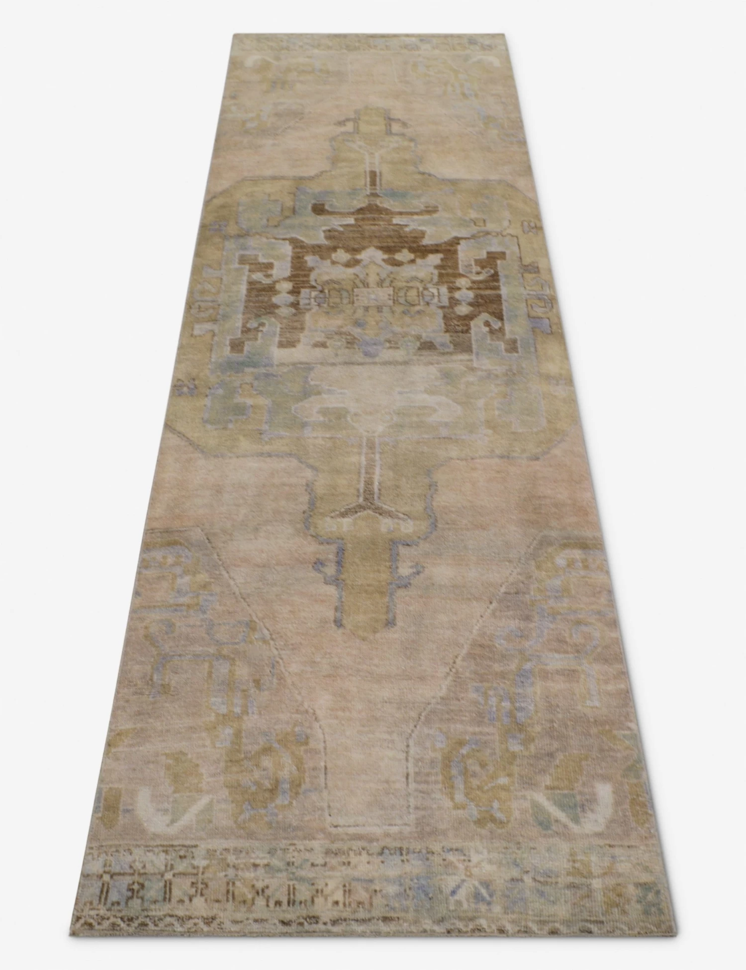 A vintage wool rug instantly transforms your space—adding warmth and rich color, all while feeling like a discovery from far-flung travels. Made entirely by hand in Turkey, this hand-knotted floor rug is truly an investment for your home, a stunning one-of-a-kind centerpiece to build and layer your style onto. The runner size is ideal for hallways or in the kitchen.