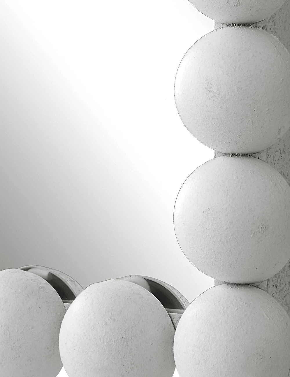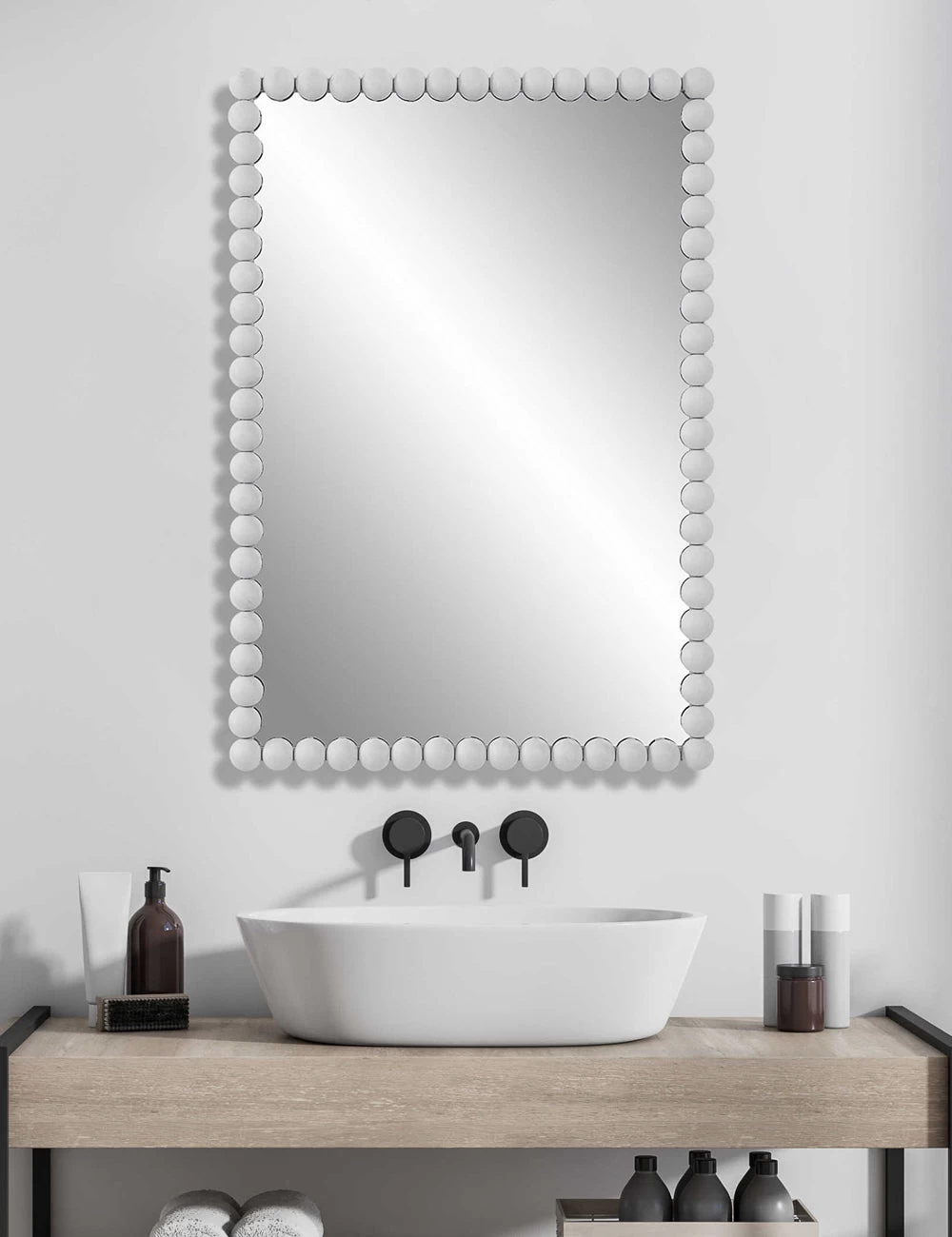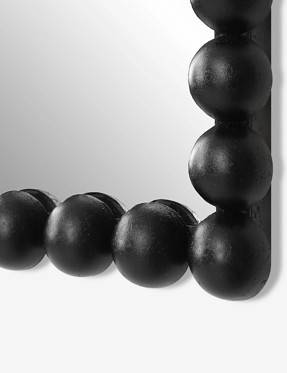 Layer a distinctive note into your look with this trend-forward mirror. Iron beading and a high-tone finish add a chic touch to this framed mirror for a playfully modern appeal. Mount vertically, horizontally, or lean on a dresser for a bright new look.