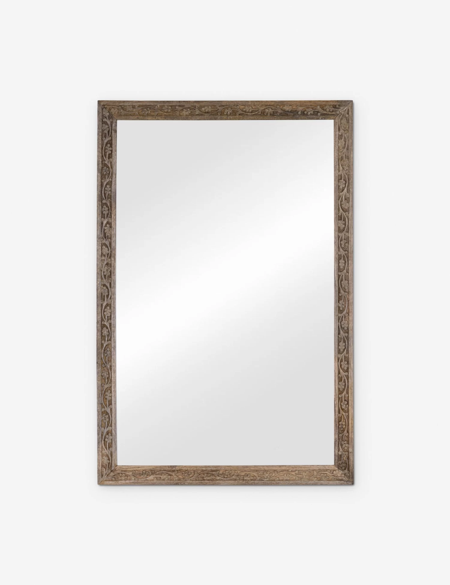 The Willoughby mirror brings a classic touch to your style. The handcrafted frame features a carved floral design with a seasoned finish that will warm the room. We love this mirror for layering depth and a touch of timeless texture into a thoughtful curation.