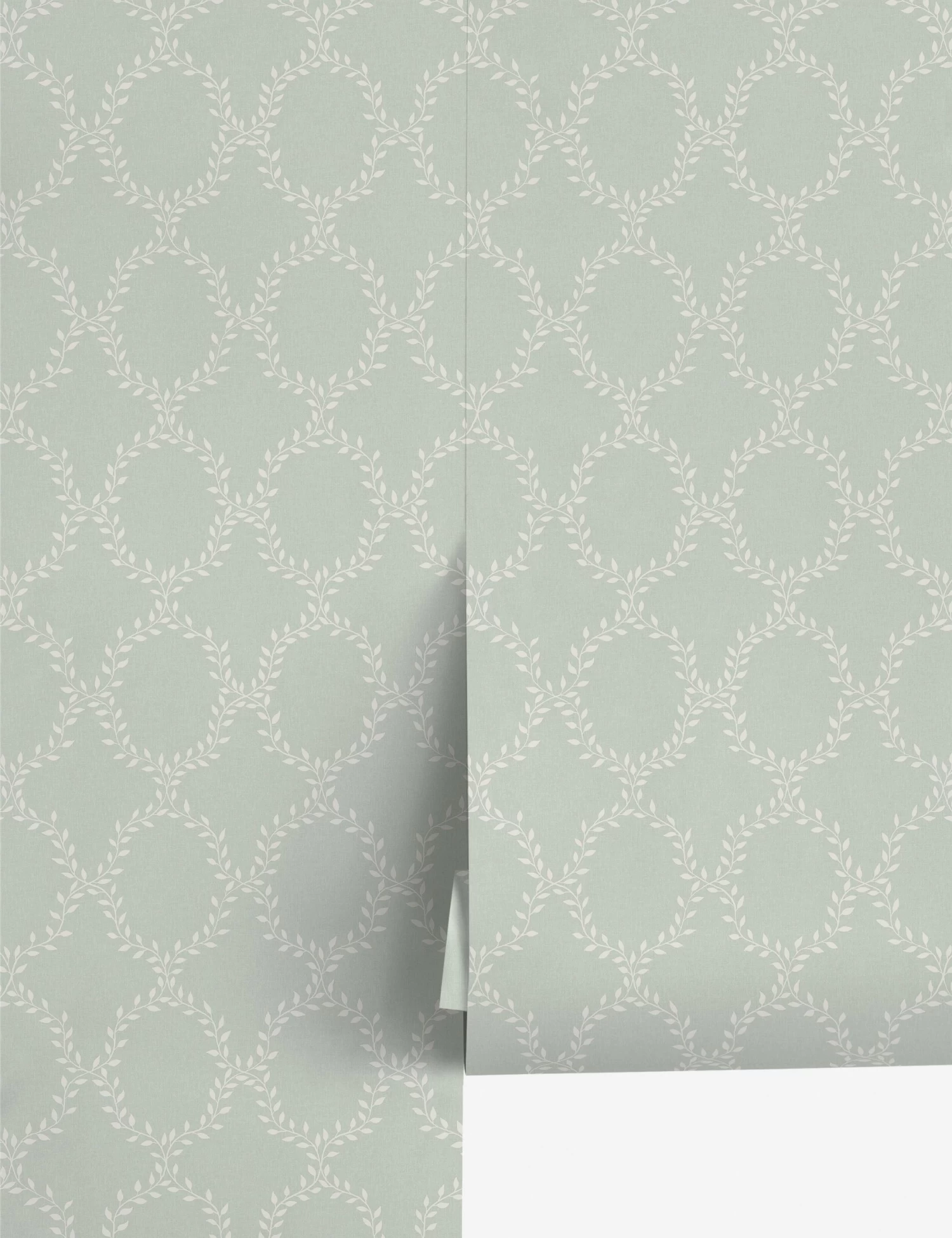 A laurel trellis fills this beautifully patterned wallpaper with botanical details in a striking geometric design. We love the lush yet subtle visual texture of this versatile wallpaper for a living room accent wall or full-coverage in a bedroom or bath.